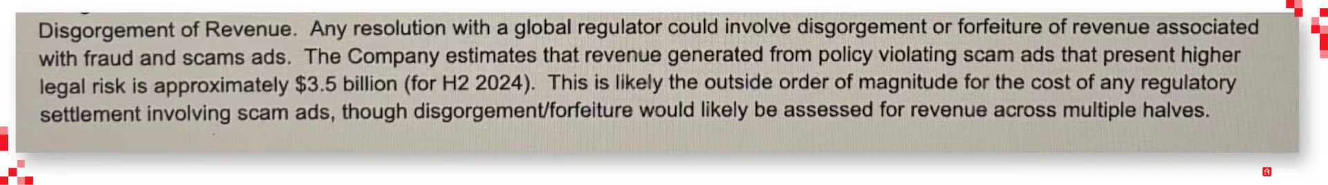 تظهر وثيقة من عام 2025 قلق الشركة من أن الانخفاض المفاجئ في "الإيرادات المخالفة" (Violating Revenue) سيؤثر على التوقعات التجارية. وفي صراع بين الأخلاق والأرقام، الأرقام تفوز دائماً. هذا يفسر لماذا يتم تجاهل أو رفض أكثر من 96% من مطالبات تعويض ضحايا الاحتيال، وفقاً لوثيقة أخرى من عام 2023.