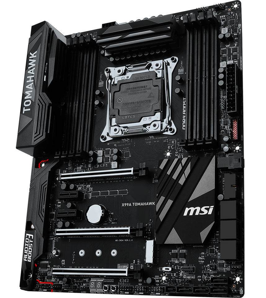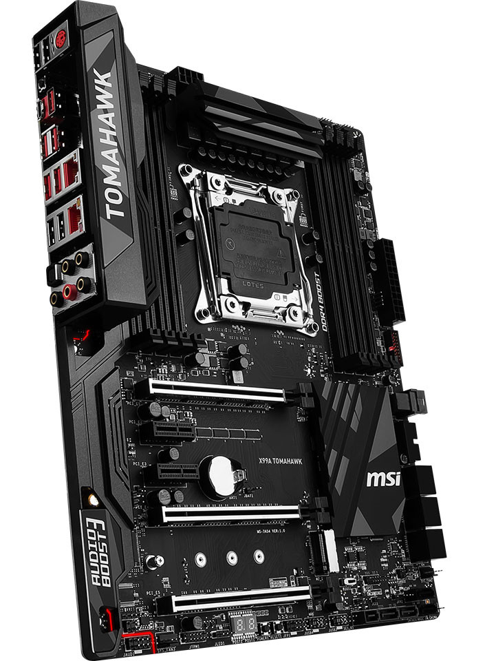 أعلنت MSI بشكل رسمي عن لوحتها الأم الجديدة X99A Tomahawk لتنضم الى التشكيلة الضخمة التي توفرها الشركة لشريحة X99 الداعمة لتشغيل معالجات Broadwell-E الجديدة بسوكيت LGA2011v3. فهذه المعالجات الجديد تعتبر الأقوى بالعالم ومن دون منازع, وبما انها الأقوى MSI تقدم بمناسبة قدومها عدد من اللوحات الجديدة ومن ضمنها هذه اللوحة. أبرز ما يميز اللوحة هو قدومها مع تصميم دوائر طاقة 8phase VRM لتضخ الطاقة اللازمة للمعالج المركزي, وهي تعتبر من اللوحات ذات الأداء القوي والمتضمن كذلك عدد من المميزات الرائدة لكنها ليست الأقوى من تشكيلة لوحات X99.