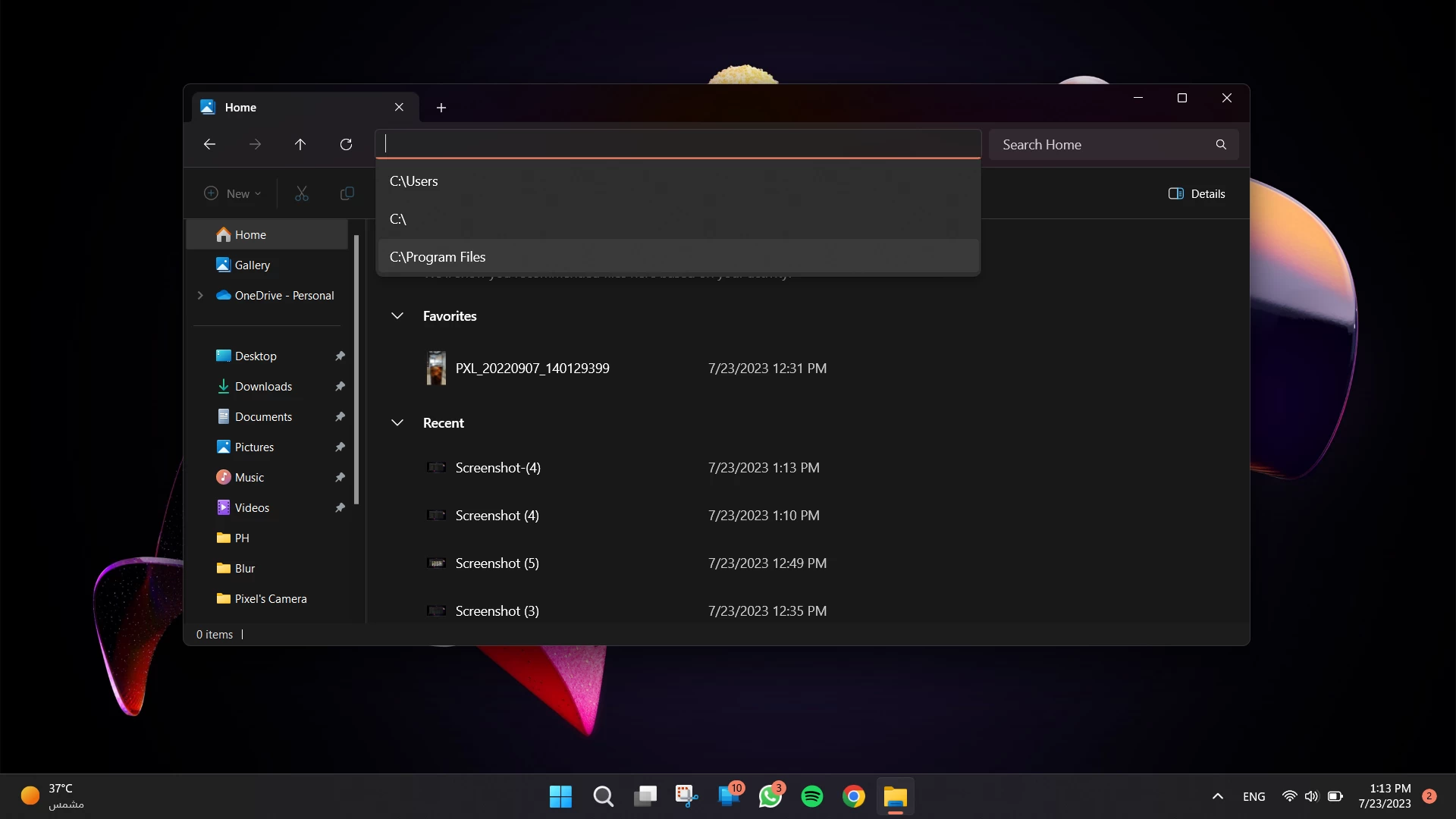 كذلك أعادت مايكروسوفت تصميم شريط العنوان العلوي في متصفح الملفات في Windows 11 لأول مرة، وهو تغيير آخر على ما وُجدنا عليه نحن وآبائنا منذ معرفتنا بنظام ويندوز. يتمثل التغيير في شكل الشريط نفسه حيث أصبح أكثر عصرية مع استخدام أيقونة مخصصة تُعلمك أنك تبحث داخل ملفات جهازك (This PC) لتكون بديلاً لأيقونة المجلد التقليدية. يدعم الشريط الآن سجل البحث، ما يسرع لك الوصول إلى المسارات التي بحثت عنها سابقاً، ولكن مازال يفتقر لدعم الاقتراحات وتخمين المسار الذي تبحث عنه.