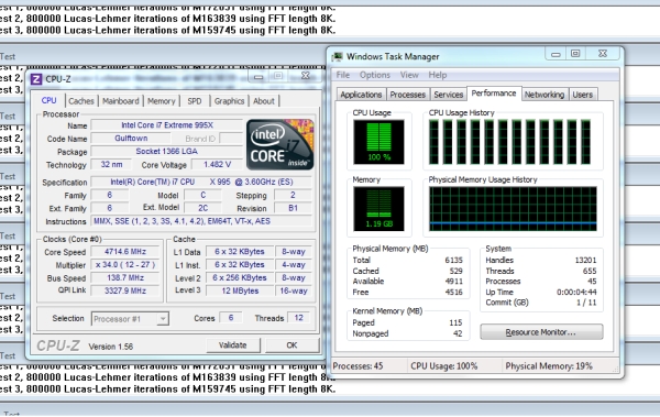 صورة لنتيجة كسر سرعة أحد النسخ الهندسية لمعالج i7 995X :
