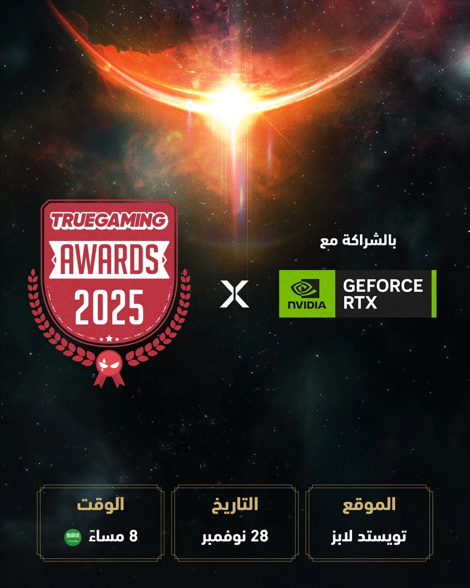 تُعد جوائز True Gaming Awards أكبر احتفال سنوي للألعاب في منطقة الشرق الأوسط وشمال أفريقيا، إذ تكرّم أبرز الإنجازات في صناعة الألعاب السعودية والعربية. وسيقام حفل هذا العام في 28 من نوفمبر لعام 2025، في Twisted Lab في بوليفارد الرياض، ليجمع المطورين وقادة الصناعة ومجتمعات اللاعبين لتسليط الضوء على المواهب الإقليمية.