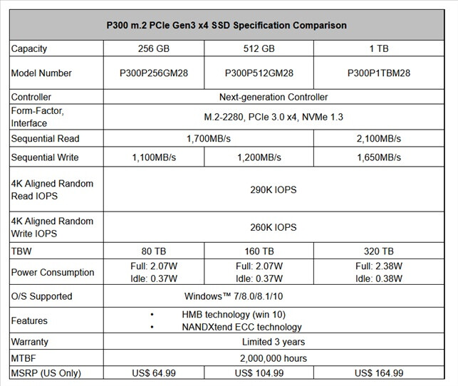 تقوم وحدة P300 بوضع تقنيات Advanced Wear Leveling لكي تقوم بالحفاظ على سلامة وحدات الـ NAND Flash خاصتها من خلال ضبط عمليات المسح والكتابة حتى لا تتأثر بها الشرائح التخزينية خاصتها. تأتي هذه الوحدات بضمان لمدة ثلاثة أعوام لكي تكون من أفضل الوحدات التي يمكن الإعتماد عليها في الوقت الحالي.