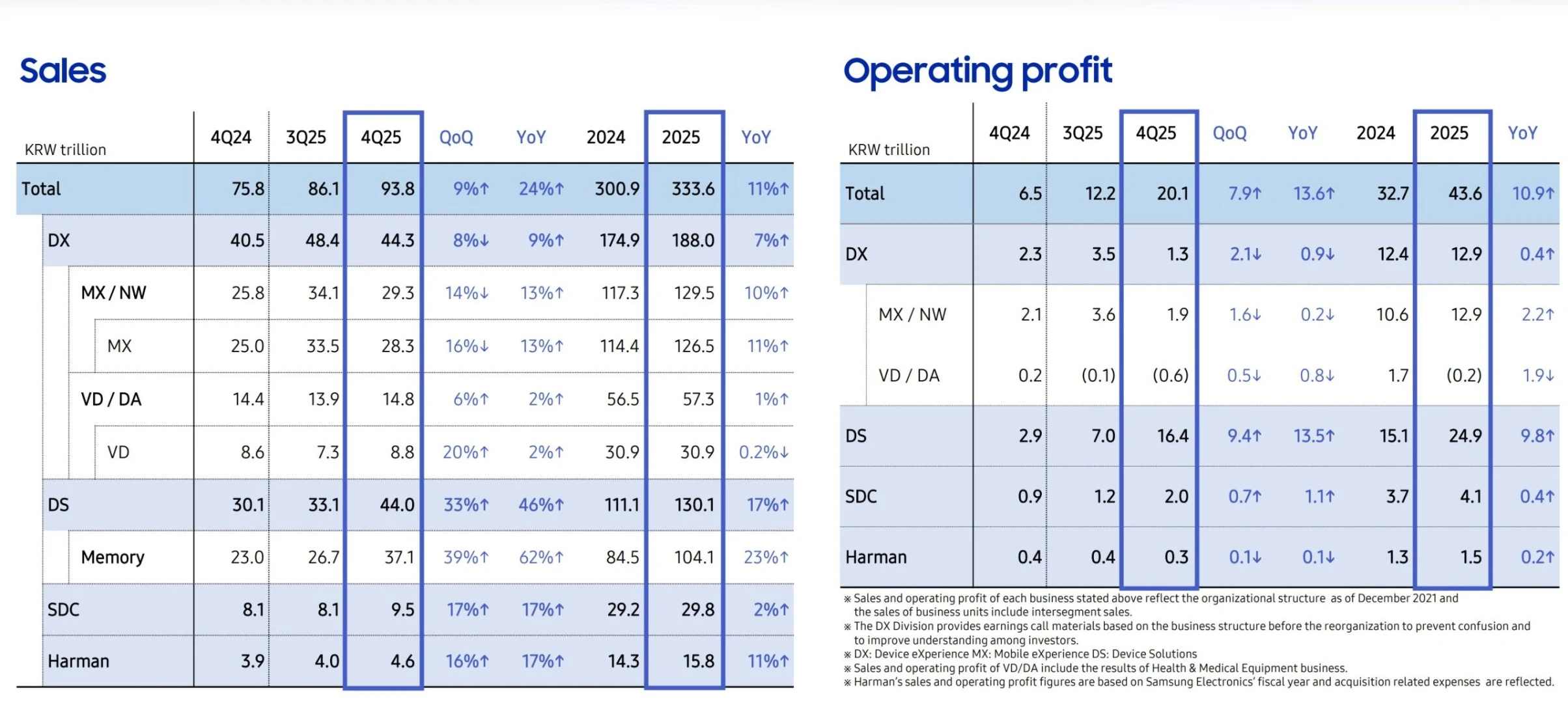 لاحظت سامسونج انعكاس ارتفاع أسعار الذاكرة على أقسام الهواتف والشاشات بشكلٍ مُباشر حيث أدّت زيادة تكلفة المُكوّنات إلى تراجع أرباح بعض الأجهزة، فيما نبّهت الإدارة إلى أن نقص المعروض قد يستمر خلال السنوات القادمة، والذي يعني استمرار هذا الضغط على هوامش الربح.