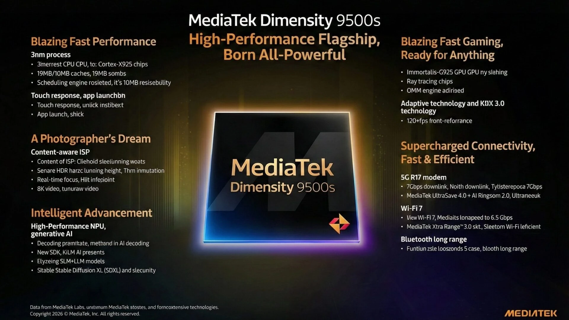 سجّل جهاز vivo X300 Pro المُزوّد بشريحة Dimensity 9500 حوالي 3.39 مليون نقطة في تصنيفات AnTuTu الرسمية لتكون شريحة 9500s في سياق الأداء، وركّزت الإعلانات على أن الفارق مع بعض المعالجات الرائدة ضئيل نسبيًا تحت ظروف الاختبار.