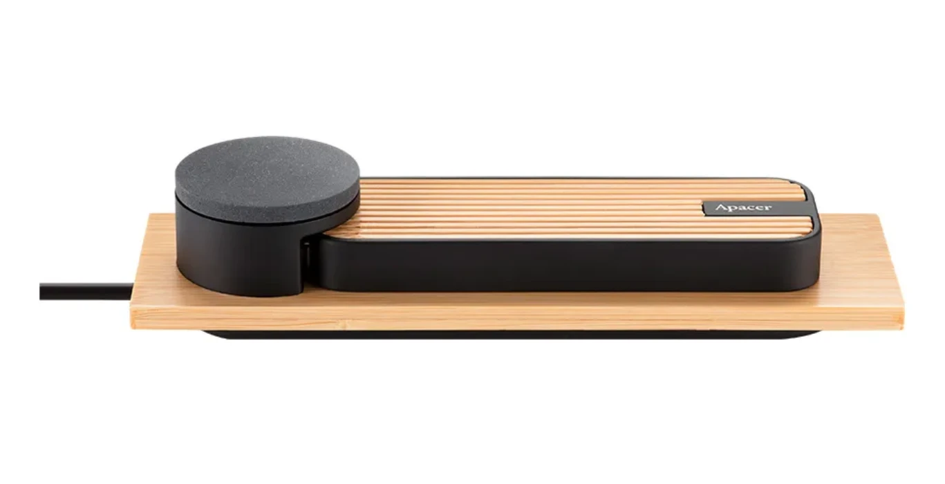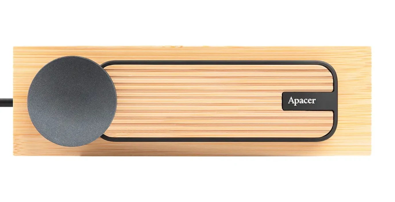 المنتج الذي نتحدث عنه يحمل اسم "Apacer AS712 (AP1TBAS712BY-1)"، ويأتي بمساحة تخزين 1 تيرابايت، لكن هذا بالتأكيد ليس مهمًا الآن. المهمُ أنه منحوت من الخيزران الطبيعي وسبائك الألومنيوم، ويأتي مع قاعدة مصنوعة هي الأخرى من مواد طبيعية مثل البلاستيك المُعاد تدويره والخيزران وطمي النهر!