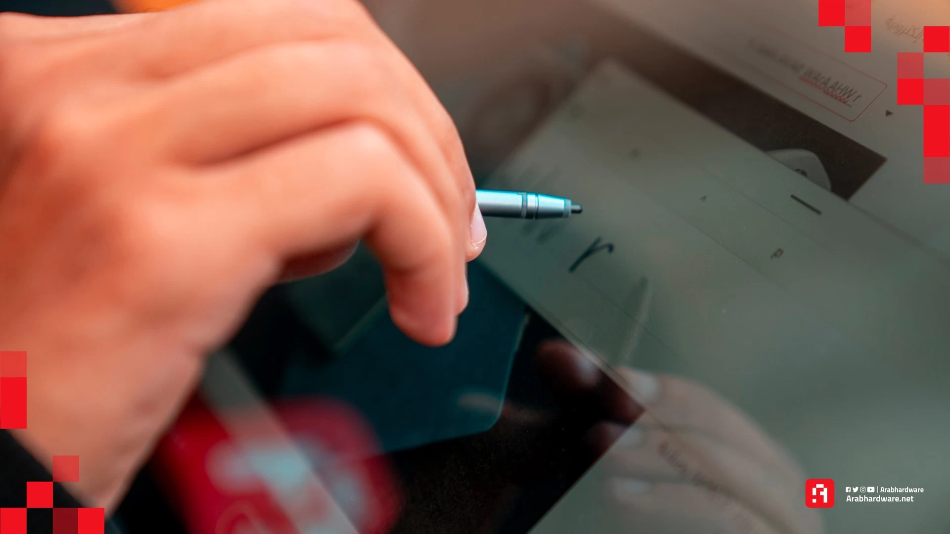 هناك قلم Stylus متواجد في الجزء الأيمن من اللاب توب، والذي يمكن أن تستخدمه للعمل والرسم على الشاشة عند تشغيل اللاب توب على وضع التابلت. خروج ودخول القلم من مكانه أمر في غاية السلاسة، وهناك نقرة بسيطة نشعر بها عند ثباته بالداخل.