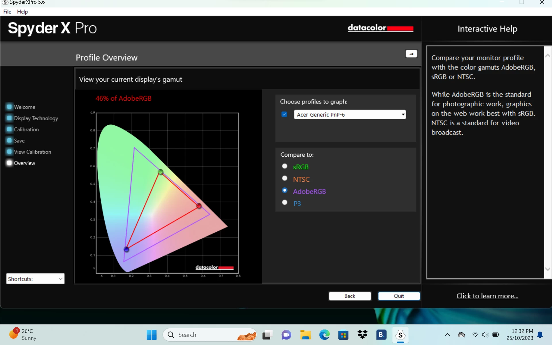 - ألوان الـ AdobeRGB المغطاة: 46% من المجموعة.