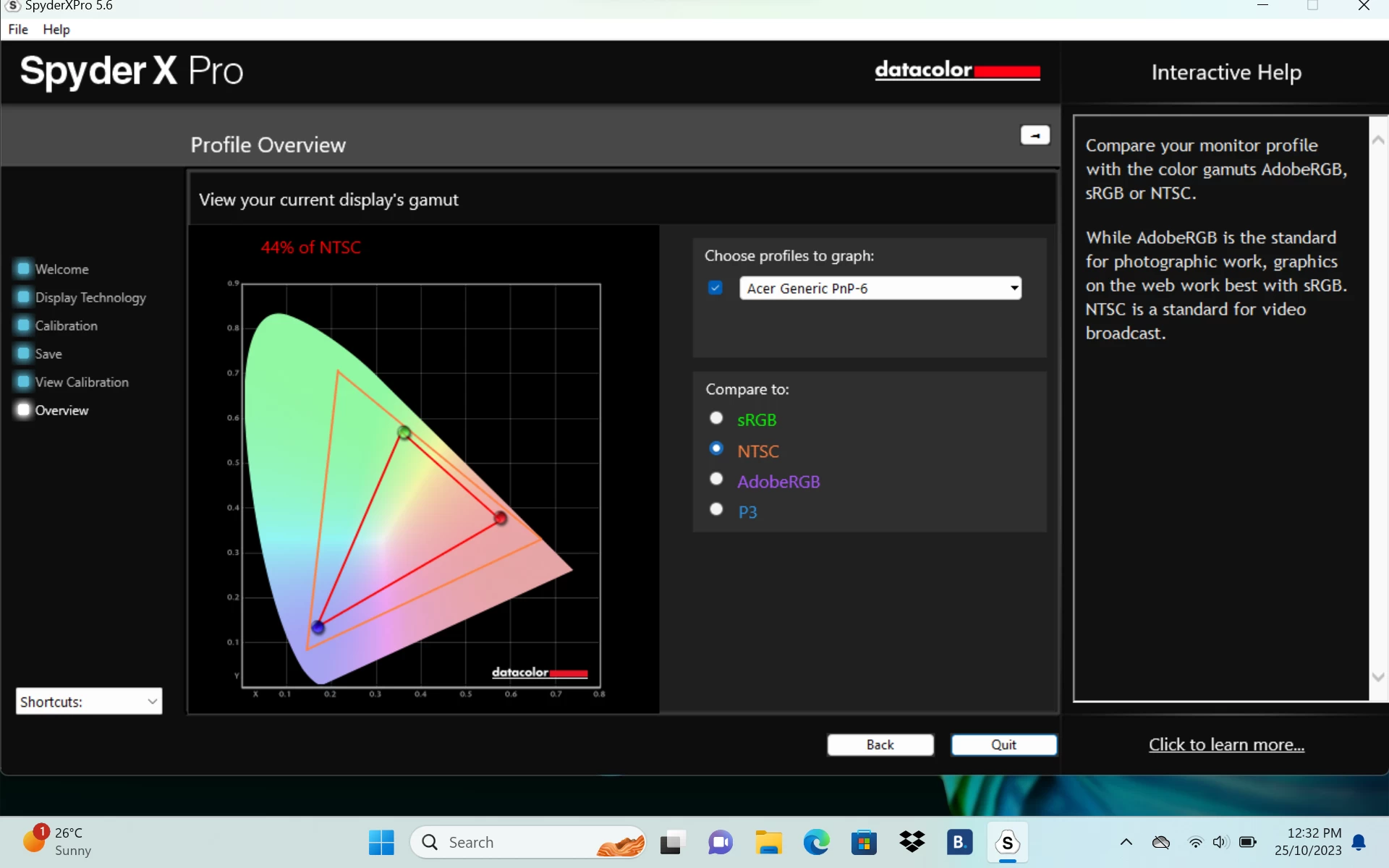 - ألوان الـ NTSC المغطاة: 44% من المجموعة.