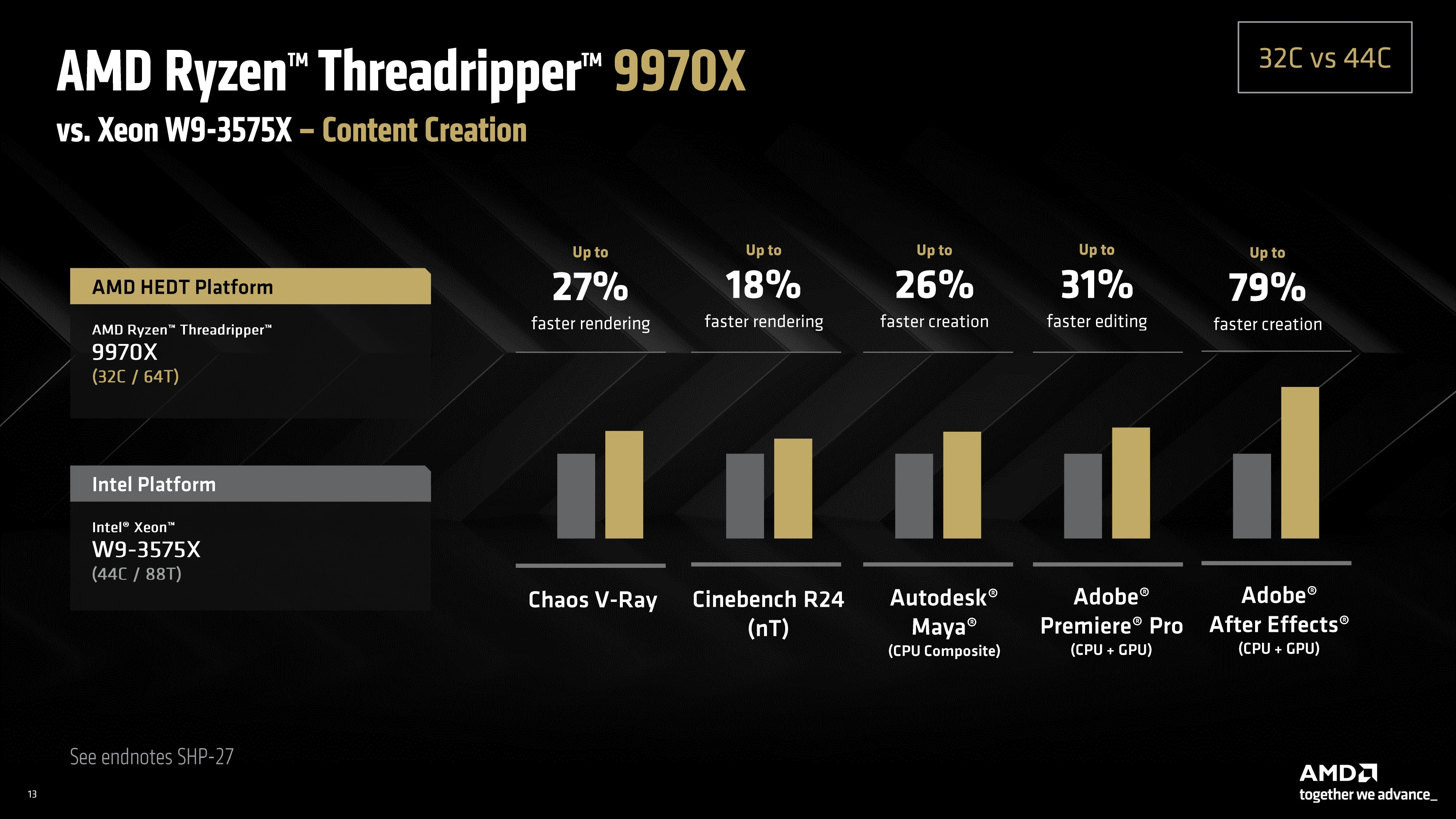- أداء قوي مقارنة بالجيل السابق Threadripper 7970X