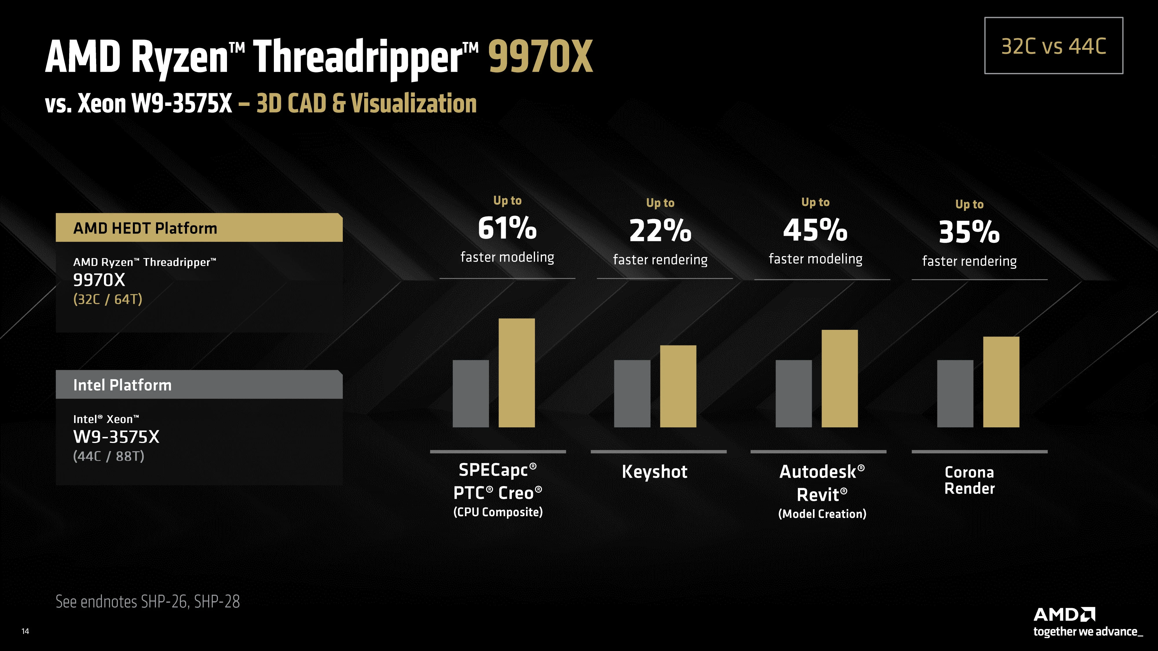 إذا كنت تتعامل يوميًا مع مجموعة بيانات كبيرة أو محاكاة معقدة أو حجم بيانات هائل، فإن معالج 9980X ذو 64 نواة يوفر أقصى إنتاجية ممكنة في مختلف مهامك اليومية. أما للمهام التي تستفيد أكثر من سرعة التردد وعدد أقل من الأنوية؛ فإن اختيارك لمعالج 9960X ذو 24 نواة سيمنحك أداءً أفضل مقارنة بالسعر، في حين يقدم معالج 9970X التوازن المثالي بين المعالجين سعرًا وأداءً.