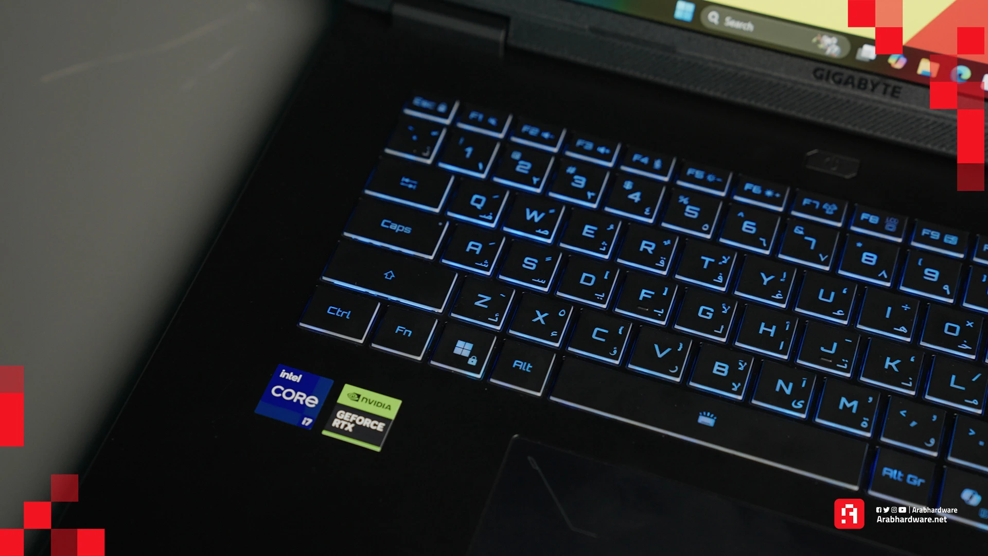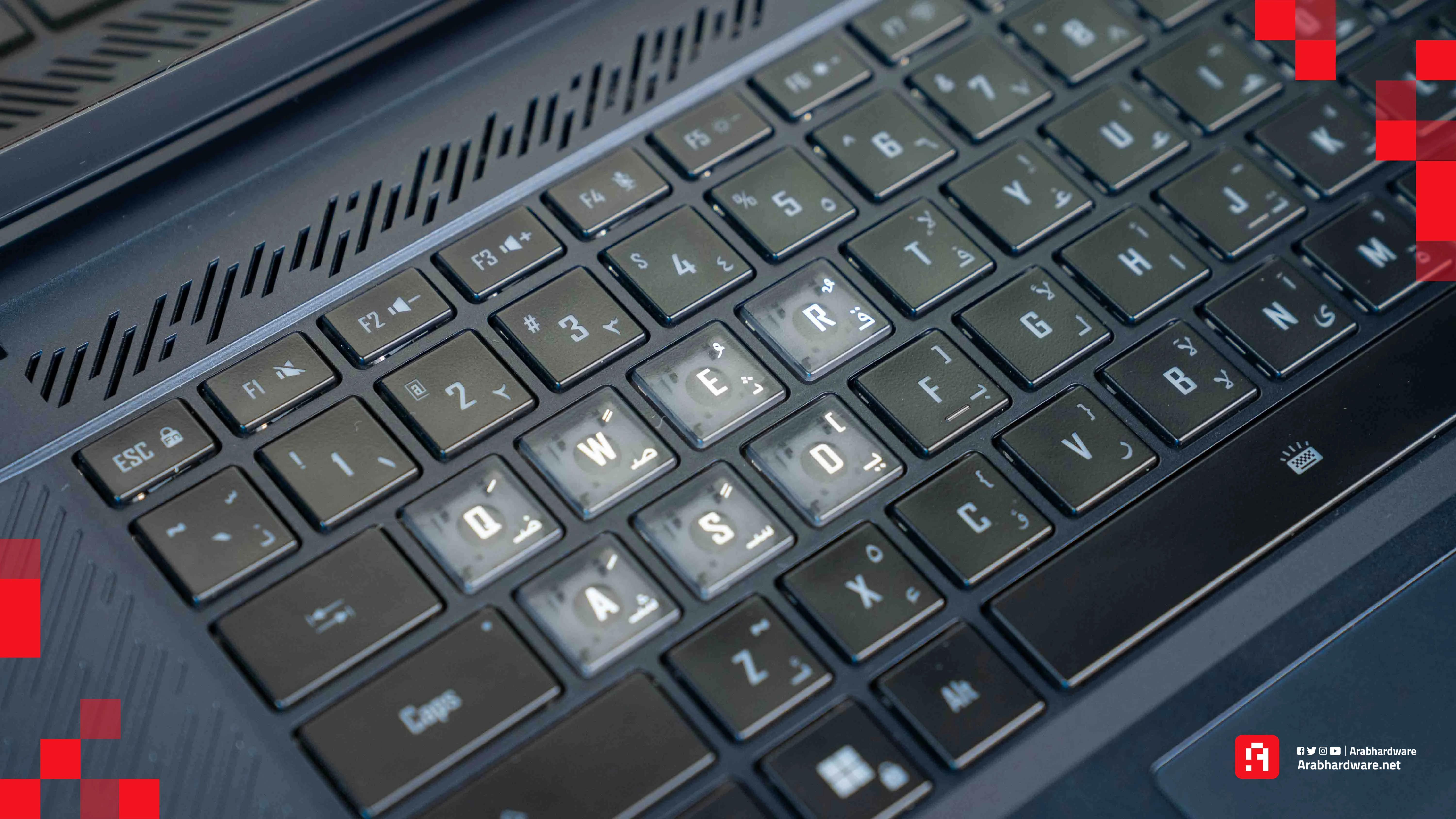 تتميز لوحة مفاتيح القادمة مع الحاسوب المحمول AORUS MASTER 16 بتصميم كامل ومريح للاستخدام لمدة طويلة في جلسات اللعب. لاحظنا أنها تحتوي على إضاءة خلفية RGB قابلة للتخصيص بثلاث مناطق أو أكثر، مما يضيف طابعًا جماليًا مميزًا. كما توفر مسافة حركة جيدة واستجابة مقبولة للاعبين، وتدمج جيجابايت أزرار WASD بتصميم Icy Touch لراحة اليد أثناء اللعب المكثف بعيدًا عن الشعور بحرارة الجهاز.
