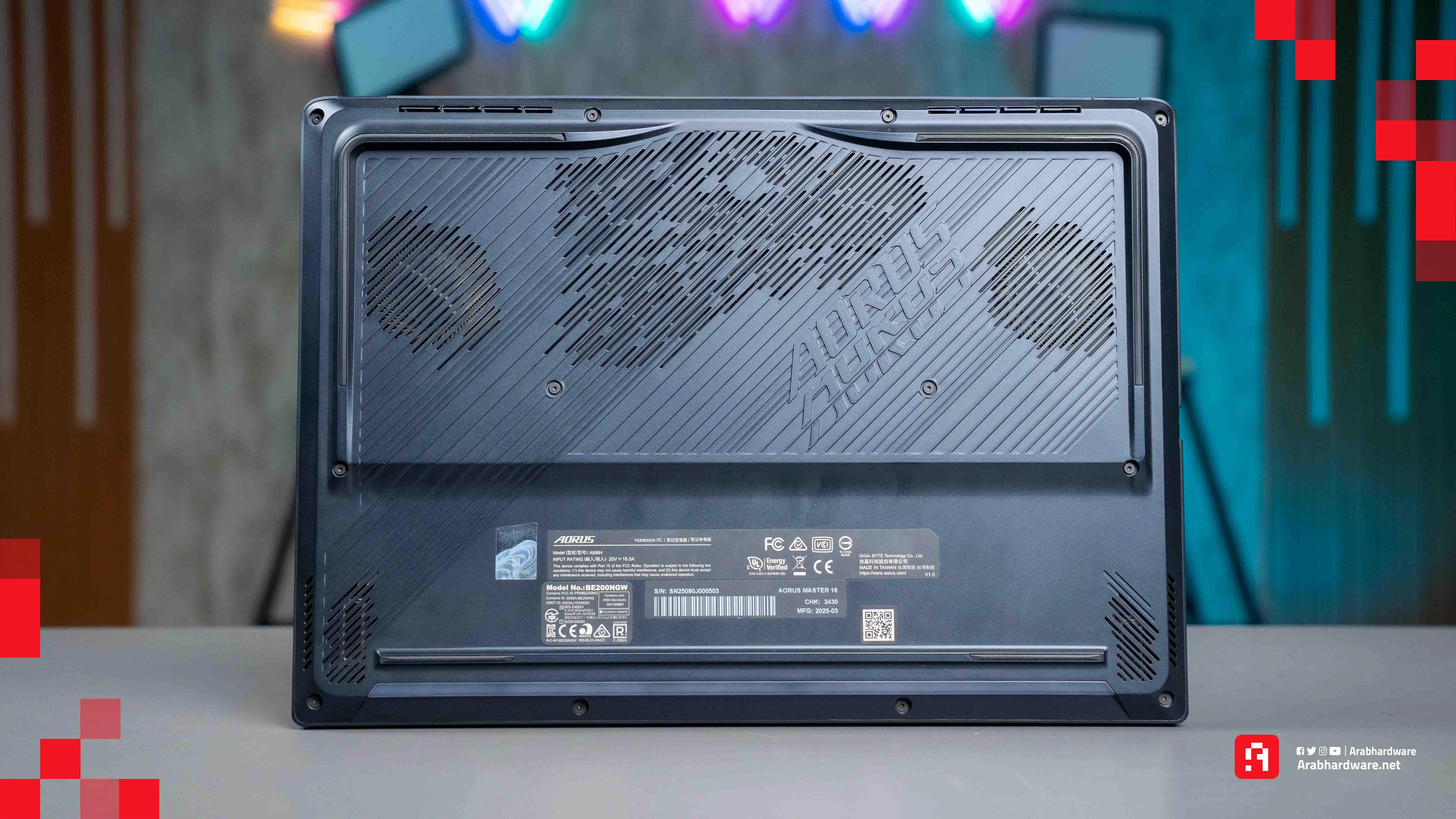 يمكن القول بكل وضوح أن نظام التبريد في الحاسوب المحمول AORUS MASTER 16 يُعد واحدًأ من أهم مزاياه الأساسية، إذ صُمم خصيصاً للتعامل مع الحرارة الهائلة الناتجة عن أقوى المعالجات المركزية والكروت الرسومية مثل Intel Core Ultra 9 و RTX 5090.