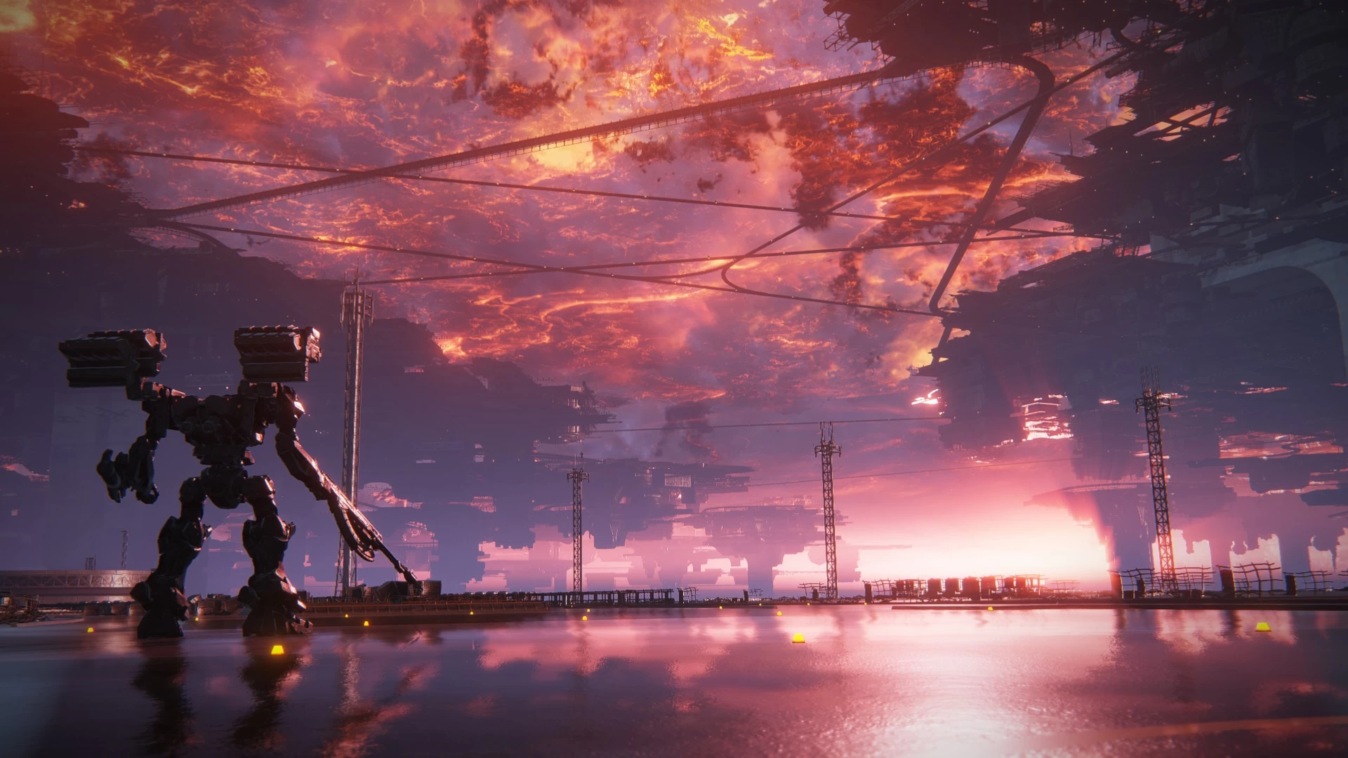 أما من الناحية الرسومية، فلعبة Armored Core VI تقف جنبًا لجنب مع ELDEN RING كأفضل تصميم رسومي عمل عليه استوديو From Software حتى الآن. نزور في اللعبة كمية ضخمة من المناطق على كوكب روبيكون، وكل منطقة تتمتع بطابع خاص بها، واستعان الاستوديو بفكر صُنع شكل مُعين للسماء (Skybox) لكل منطقة مما يُغير تمامًا من الإضاءة وانعكاس الألوان على البيئات من حولك. يوجد اهتمام كبير بالتفاصيل هنا سواء في تصميم البيئات أو الآلات المُدرعة نفسها والأسلحة، مع Textures بدقة وجودة عالية ترفع من مدى جمال الرسومات. يمكنكم رؤية مجموعة رائعة من الصور التي لقطتها بخاصية التصوير Photo Mode والتي تتواجد لأول مرة في لعبة من From Software!