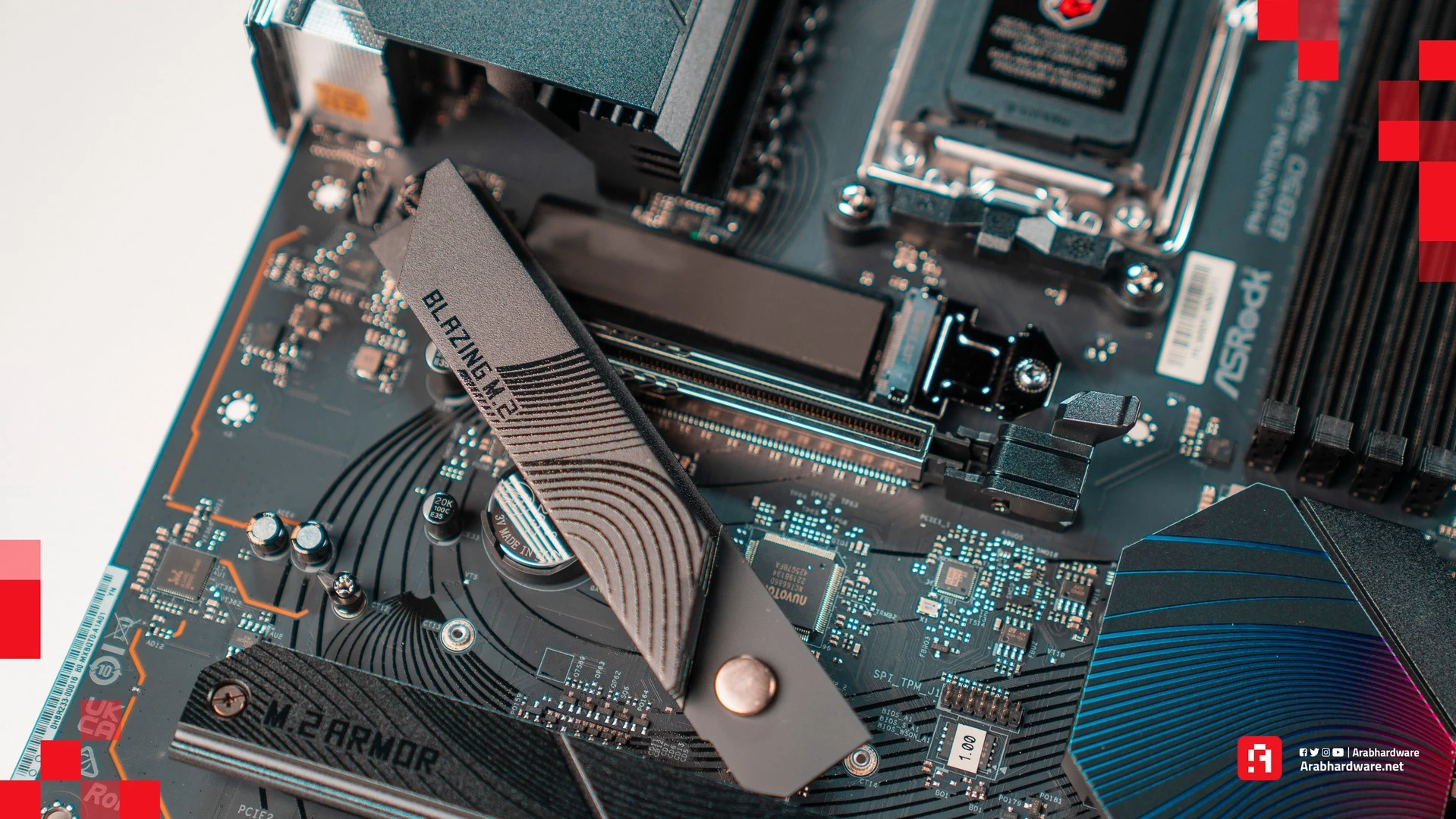 كما أشرنا في بداية المُراجعة، تتميّز اللوحة الأم ASRock PHANTOM GAMING B850 Riptide WiFi بمجموعة كبيرة من المُشتّتات الحرارية الموزّعة بذكاء لتبريدها، وتوفير أداء أكثر استقرارًا، وقدرات كسر سرعة مُتطوّرة.