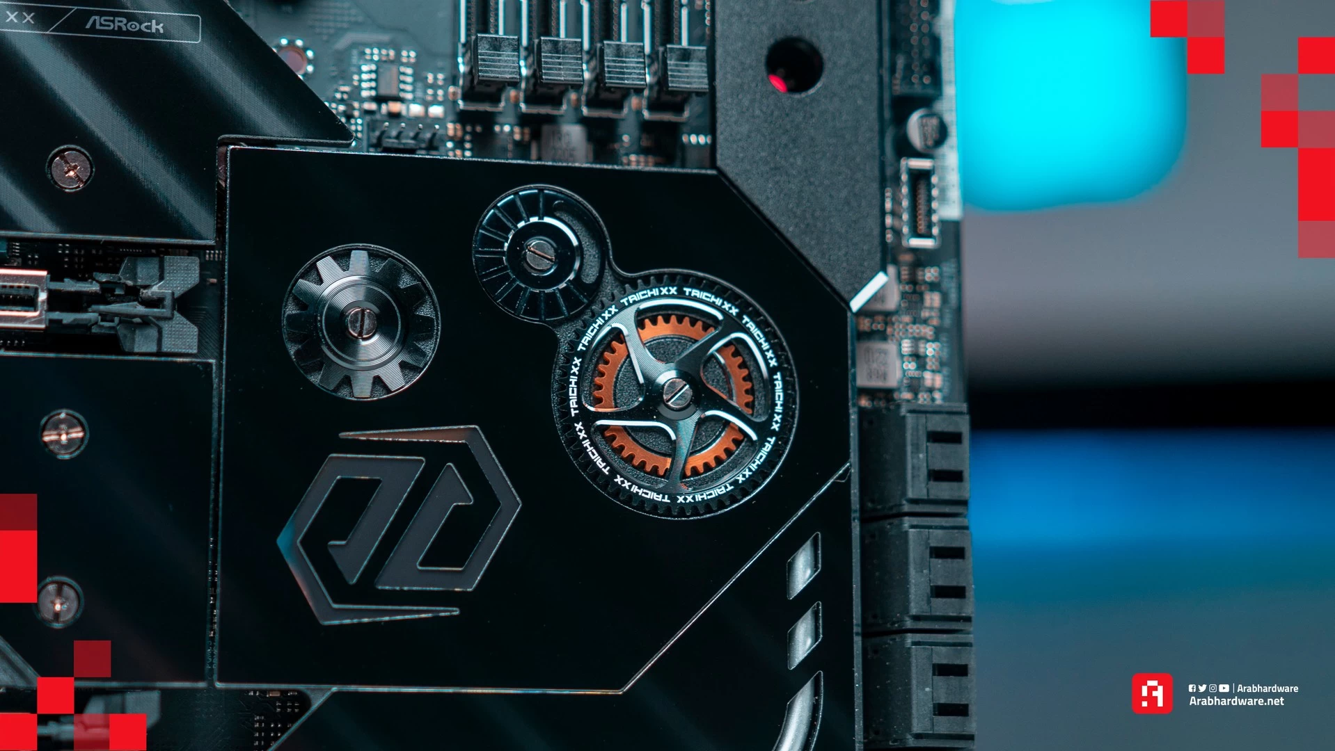 فمن ناحية التصميم الخاص باللوحة، حدّث ولا حرج. ومن ناحية التبريد، فيُمكننا القول أننا أمام درع مُتحرّك من بلوكات التبريد في كُل مكان تقريباً. هذا بالإضافة إلى قابلية كسر السرعة العالية بفضل مراحل الطاقة 24 + 2 + 1 مرحلة المُصنّفة عند 105 أمبير.