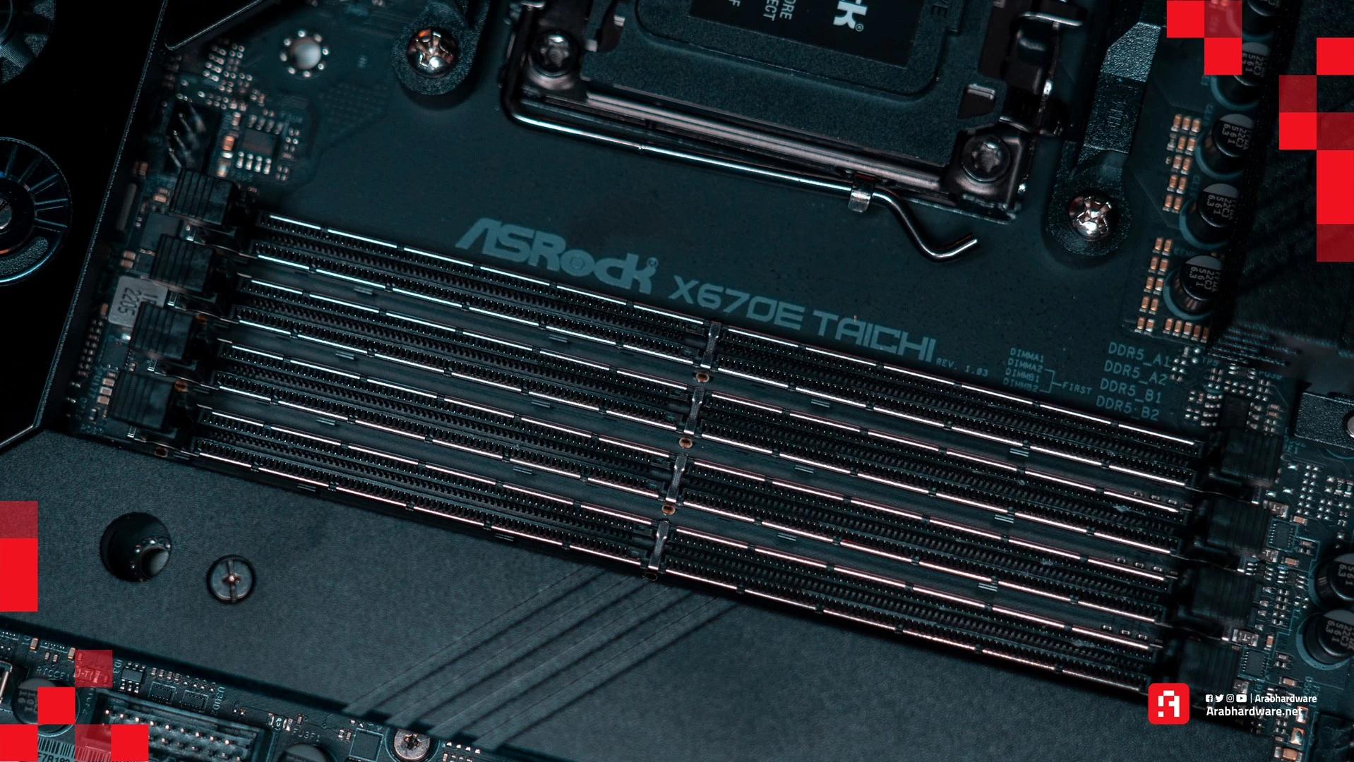 تدعم Taichi رسميًا سرعات DDR5-6600 مع ملفّات XMP و EXPO، ويُمكن للوحة استخدام ما يصل إلى 128 جيجابايت من الذاكرة.