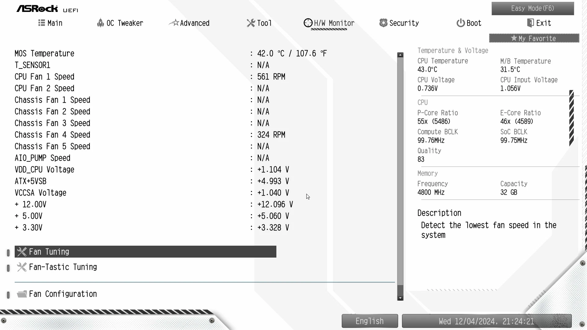 على مستوى الحرارة، أثبتت اللوحة الأم قدرتها على الحفاظ على درجات حرارة منخفضة، حيث سجلت 42 درجة مئوية بينما سجل المعالج 43 درجة مئوية في المتوسط، وهذه نتائج جيدة لهذه الفئة السعرية. نفس الشيء ينطبق على الترددات حيث عمل المعالج بتردداته القصوى عند 5200 ميجاهرتز بينما كانت ترددات الرامات عند 4800 ميجاهرتز