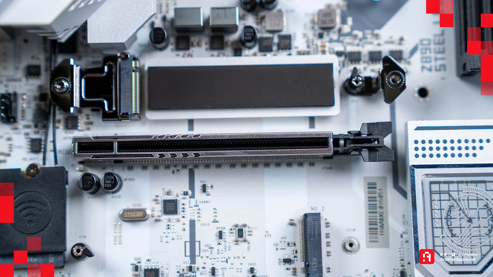 تتمتع لوحة ASRock Z890 Steel Legend بمجموعة متميزة من خيارات التخزين التي تجعلها خيارًا قويًا للكثير من المستخدمين. بالنسبة لمنافذ الـ M.2، فهناك 3 منها بواجهة PCIe 4.0، ومنفذ إضافي بواجهة PCIe 5.0 فائقة السرعة. بالإضافة إلى ذلك، تمتلك اللوحة فتحات توسعة ممتازة إحداها توفر عرض نطاقٍ ترددي مذهل يصل إلى 128 جيجابايت في الثانية، مما يتيح للمستخدمين تركيب أحدث كروت الشاشة التي تتطلب سرعات عالية لنقل البيانات.