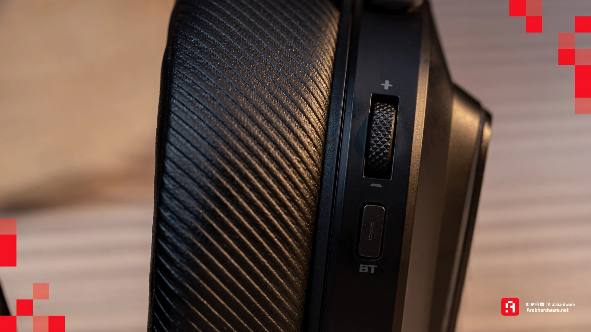 تم وضع عناصر وأزرار التحكّم في مكان رائع للغاية، حيث يتم اخفائها بشكل ذكي في الخلف أسفل الجزء المعدني الذي يصل السمّاعة بعصابة الرأس. إذا نظرت للجزء الخلفي من كوب الأّذن اليُسرى، ستجد أمامك مجموعة من عناصر التحكّم الخاصّة باتّصال Bluetooth، والاتصال اللاسلكي 2.4GHz، بحيث تستطيع التبديل بين الوضعين. هناك أيضًا منفذ USB-C وزر للتحكم في الوسائط المُتعدّدة لتشغيل وإيقاف الوسائط وأيضًا استقبال ورفض المُكالمات، بالإضافة إلى بكرة التحكّم في مُستوى الصوت.