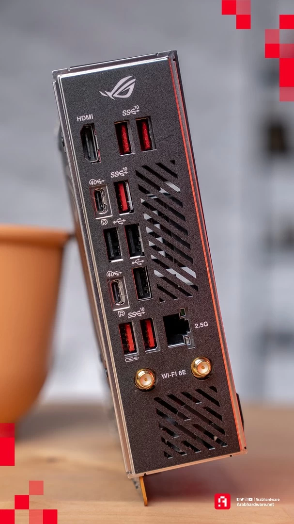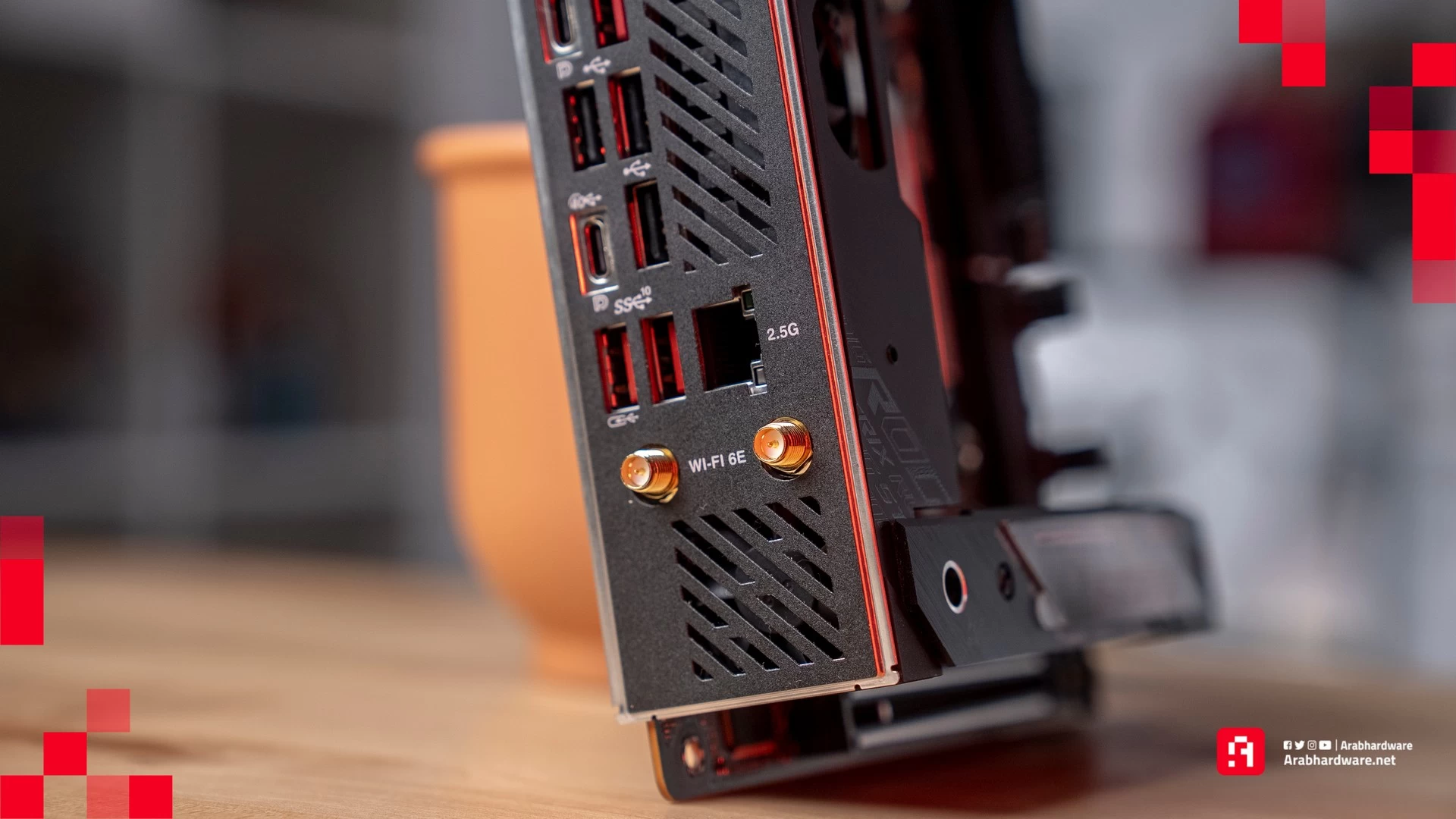 هناك دعم واسع لمنافذ USB السريعة، وهناك أيضاً منفذين من النوع C بسرعة 40 جيجابت في الثانية، وأيضًا دعم لكل من WiFi 6E و 2.5G LAN لتوفير الشبكات فائقة السرعة، كما ويوجد أيضاً منفذ HDMI.