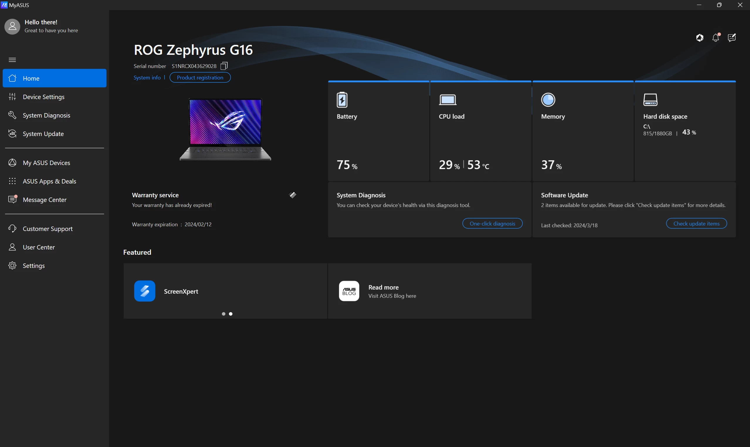 على الجانب الآخر، سيوفر لك برنامج MyASUS أكثر من مجرد مراقبة درجات الحرارة ونشاط الجهاز. فبالإضافة لتوفيره هذه الأمور بشكلٍ أكثر عمقاً، يُتيح لك البرنامج التحكم الشامل في كل أجزاء اللاب توب، بما في ذلك أوضاع الشاشة، السطوع، أو حتى حل المشاكل التقنية التي تواجهك لكل جزءٍ من أجزاء اللاب توب.