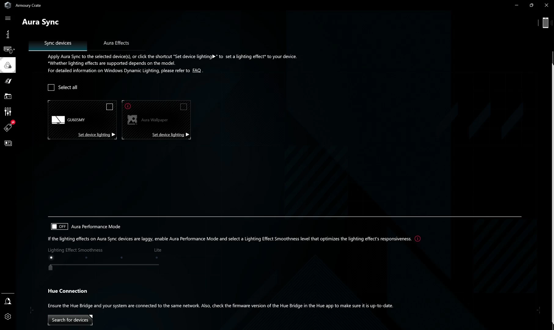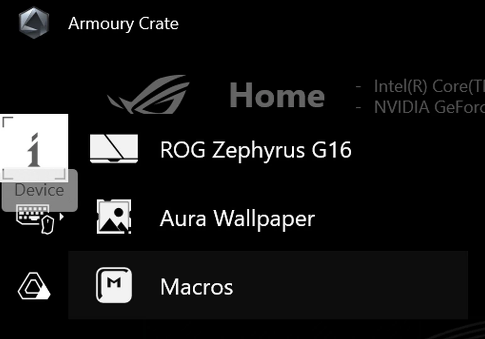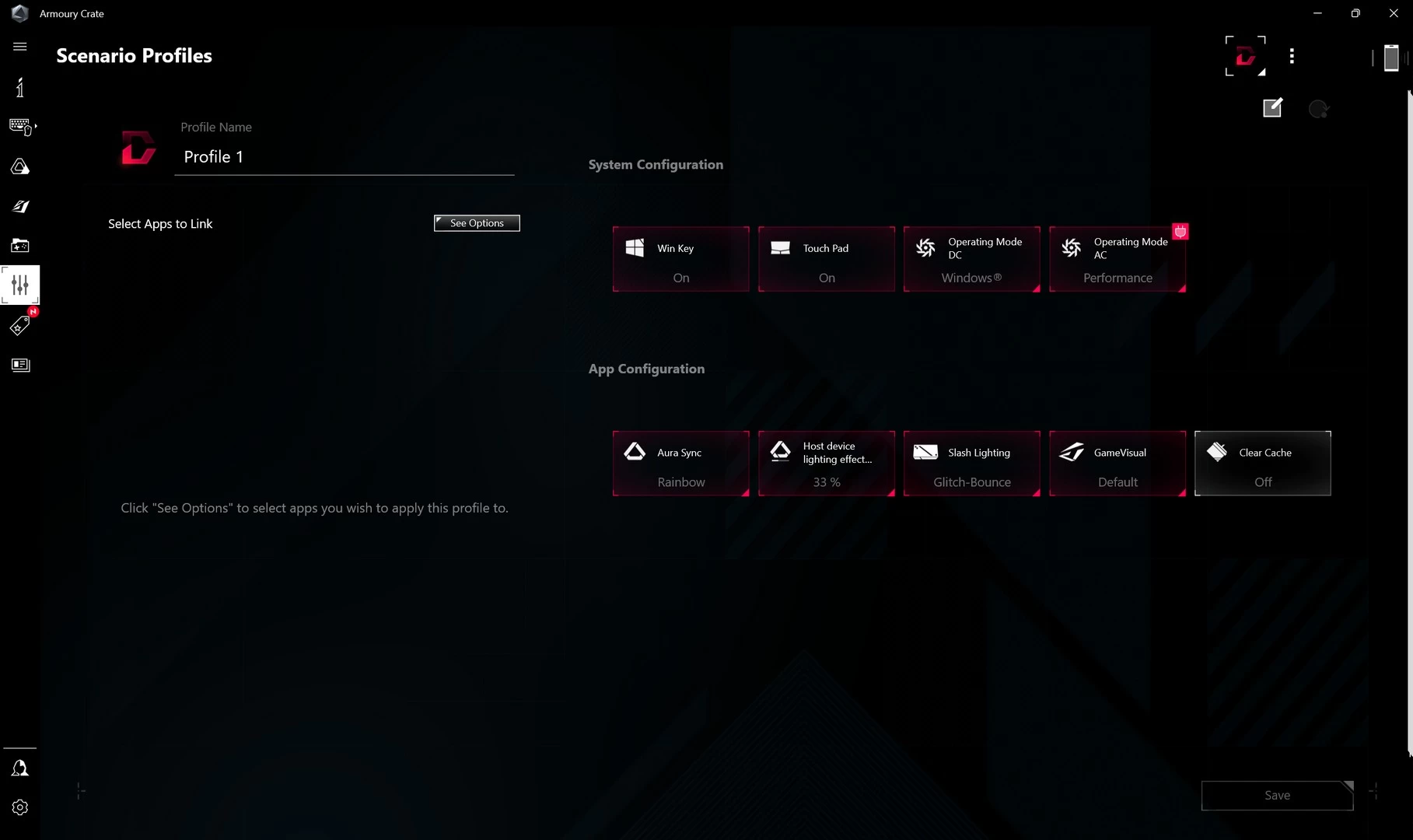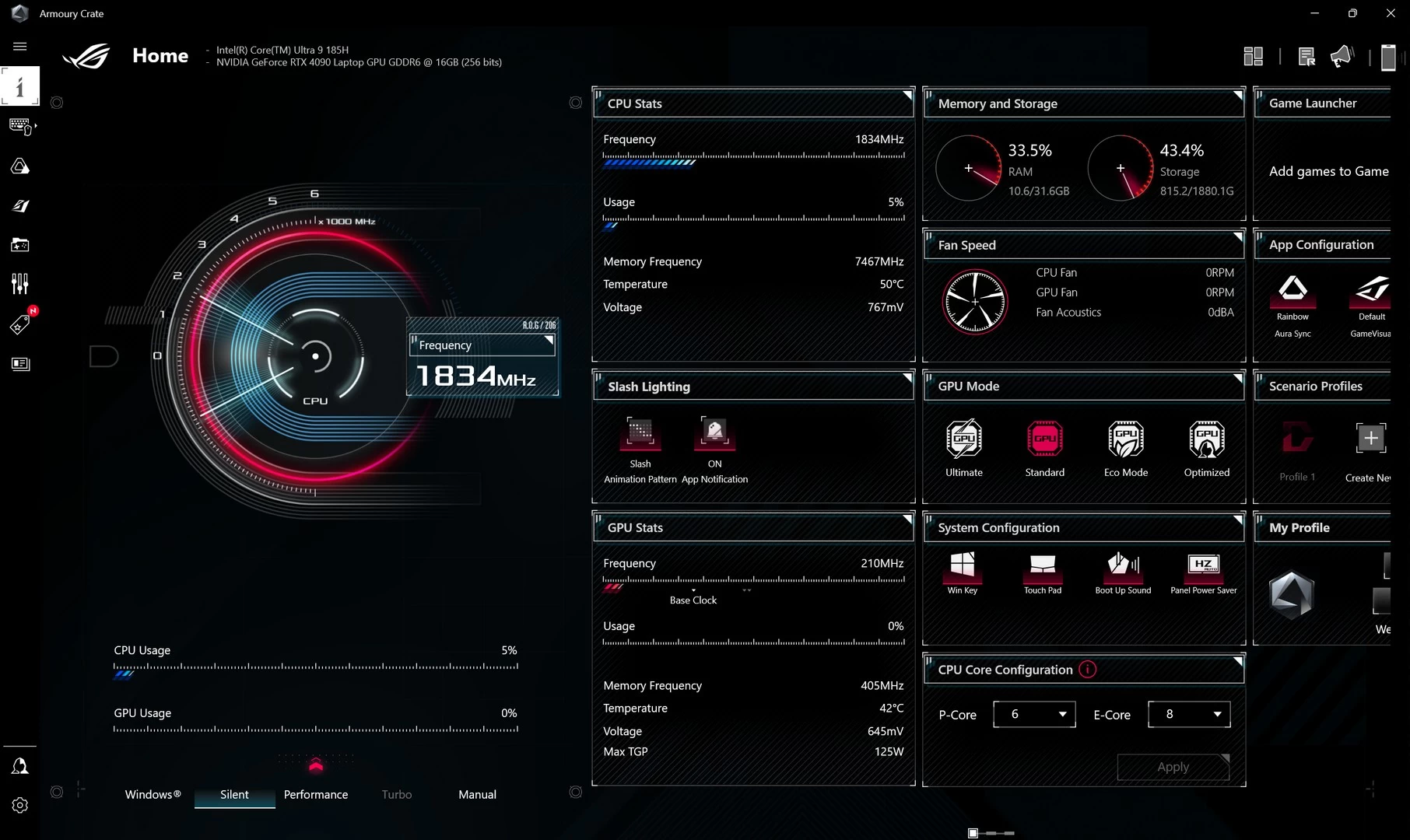 سيوفر لك برنامج ARMOURY CRATE القدرة على مراقبة جهازك عن كثب. سواء كنت ترغب في تعديل بعض الإعدادات، مراقبة درجات الحرارة أو حتى التحكم في إضاءة RGB. سيُتيح لك البرنامج أيضاً القدرة على معرفة استخدام كارت الشاشة، المعالج، الرامات في الوقت الفعلي. كما أنه سيوفر لك نظرة على الترددات، درجات الحرارة وغيرها من الأمور. بالإضافة لذلك، ستتمكّن من التحكم في إضاءة RGB للتوافق مع كل لعبة على حدة. وفي حال أردت التحكم في مستويات الطاقة، أو سرعات المراوح، فإن البرنامج سيوفر لك هذا أيضاً من خلال ملفات المراوح والطاقة المُخصّصة أو حتى اليدوية.