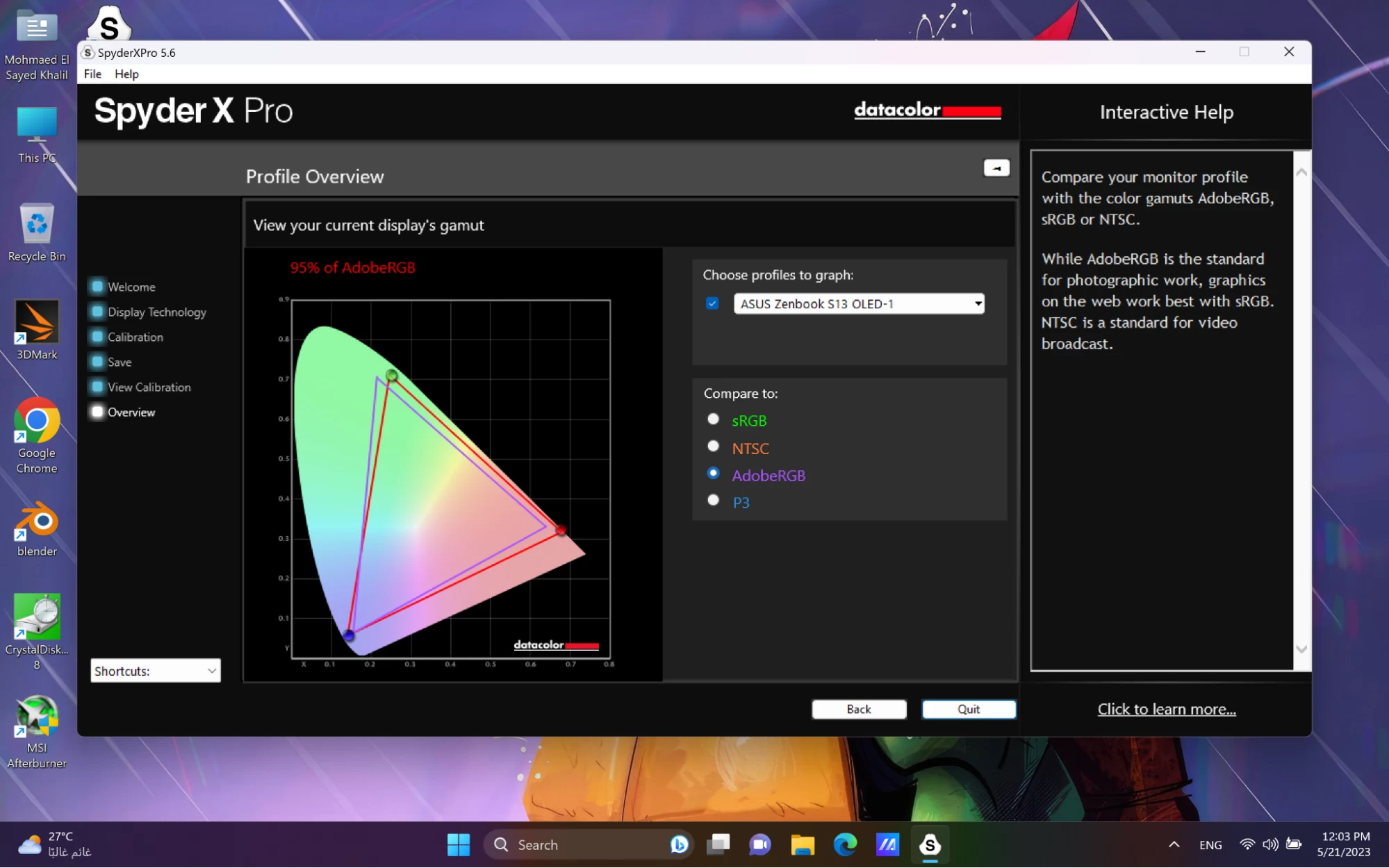صار من المحرج أن نراجع وراء شاشات ASUS التي تأتي بالـ OLED. تغطية ألوان الشاشة نتائجها كانت الآتية: