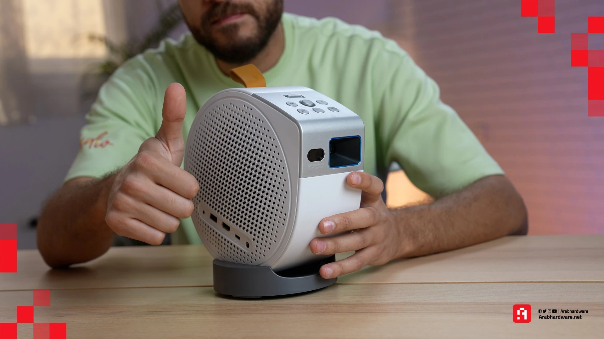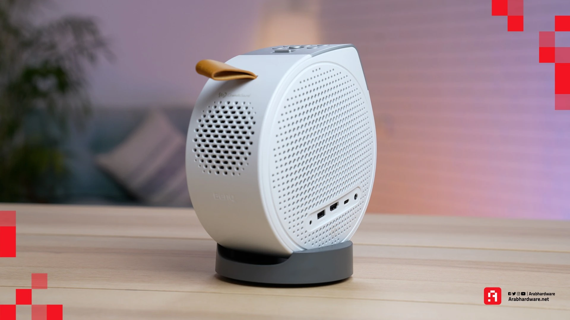 يسمح التصميم الدائري والقاعدة المرفقة لجهاز العرض بتوجيهه إلى أي اتجاه تحتاجه تقريبًا، لتستمتع بصورة واضحة ونابضة بالحياة بدقة عرض 1080 بكسل. نعم، قد يسأل البعض لماذا لم يدعم دقة عرض 4K؟ هذا سؤال مشروع، ولكن عليك معرفة أمر مهم كلما ارتفعت الدقة أصبح الجهاز مكلفًا أكثر، وهذا ما كانت تحاول BenQ التركيز عليه بتقديم جهاز عرض منزلي محمول ومتنقل وبدقة عرض ممتازة ضمن فئة سعرية جيدة. نتفق أن دقة عرض 4K أفضل، ولكن ما زالت دقة عرض 1080 بكسل تقدم لنا تجربة مشاهدة ممتازة، فهي لا تعد عيبًا بالجهاز.