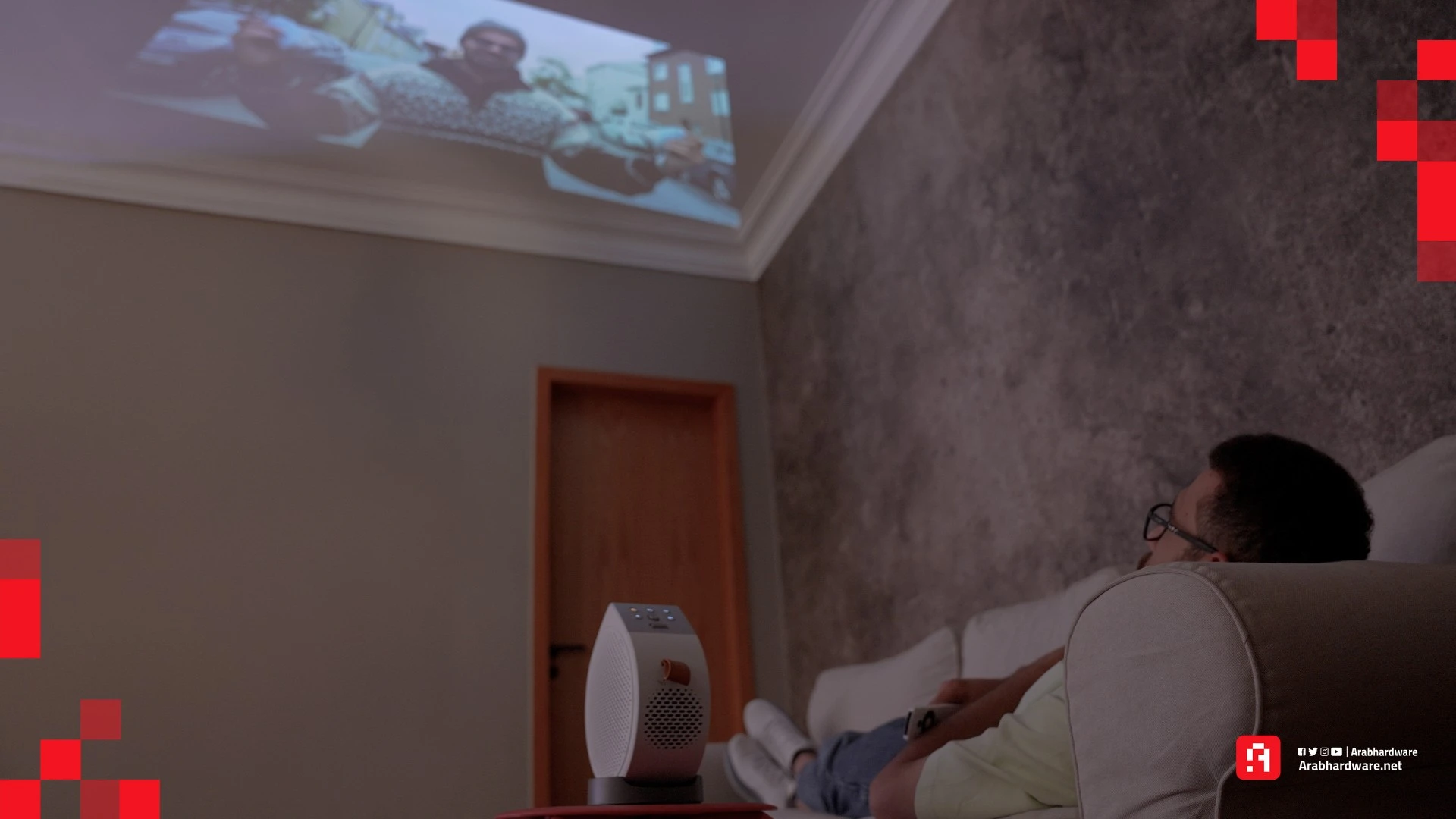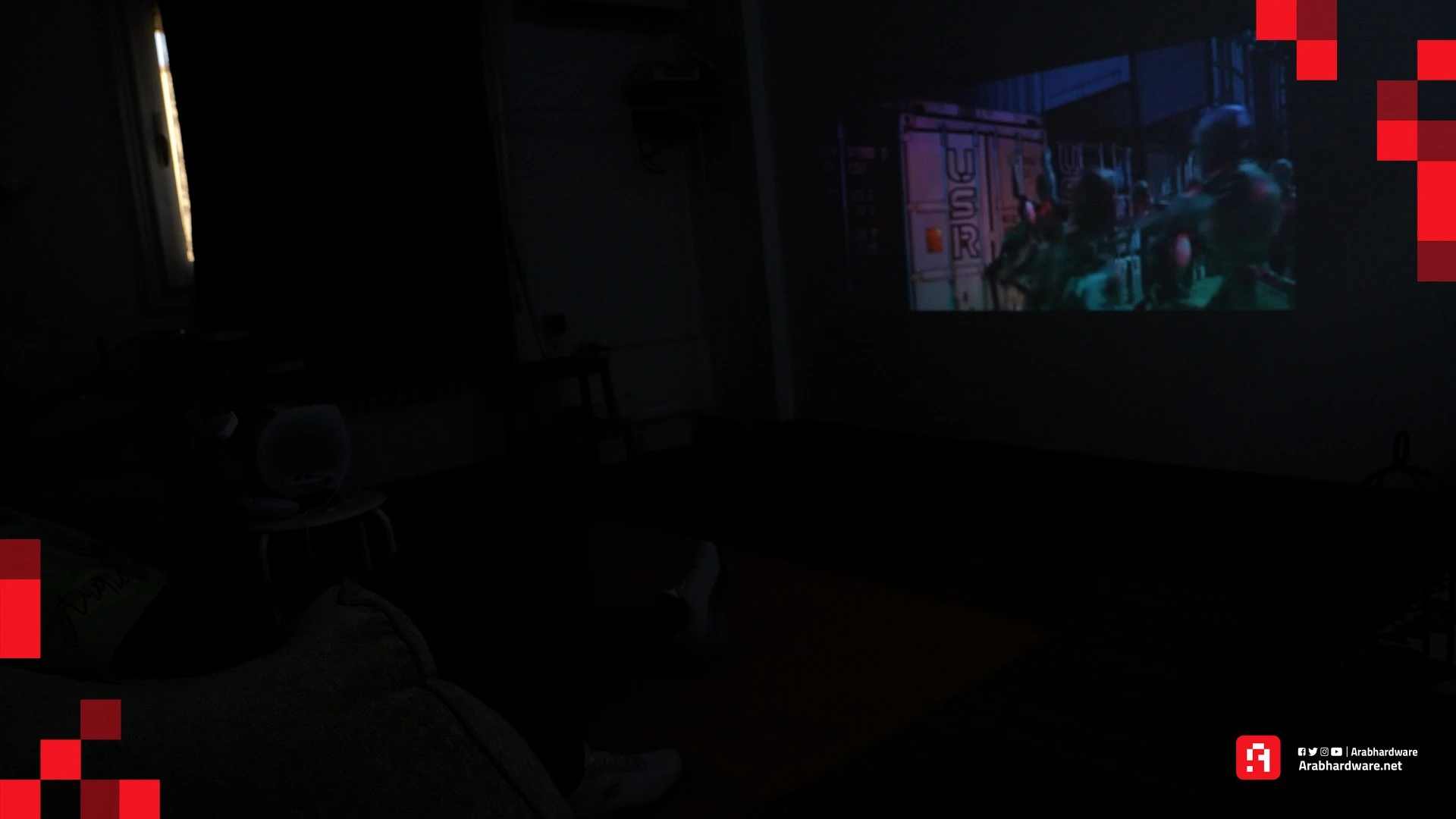 وفي حال كانت الإضاءة المحيطة شبه معدومة في غرفة النوم، ستبرز الألوان بوضوح على أي سطح مستوٍ تقريبًا. عمومًا، يُعد معدل السطوع الذي يصل إلى 500 لومن مناسبًا جدًا، فهي كانت كافية لتحقيق تجربة مشاهدة ممتازة بالنسبة لنا.