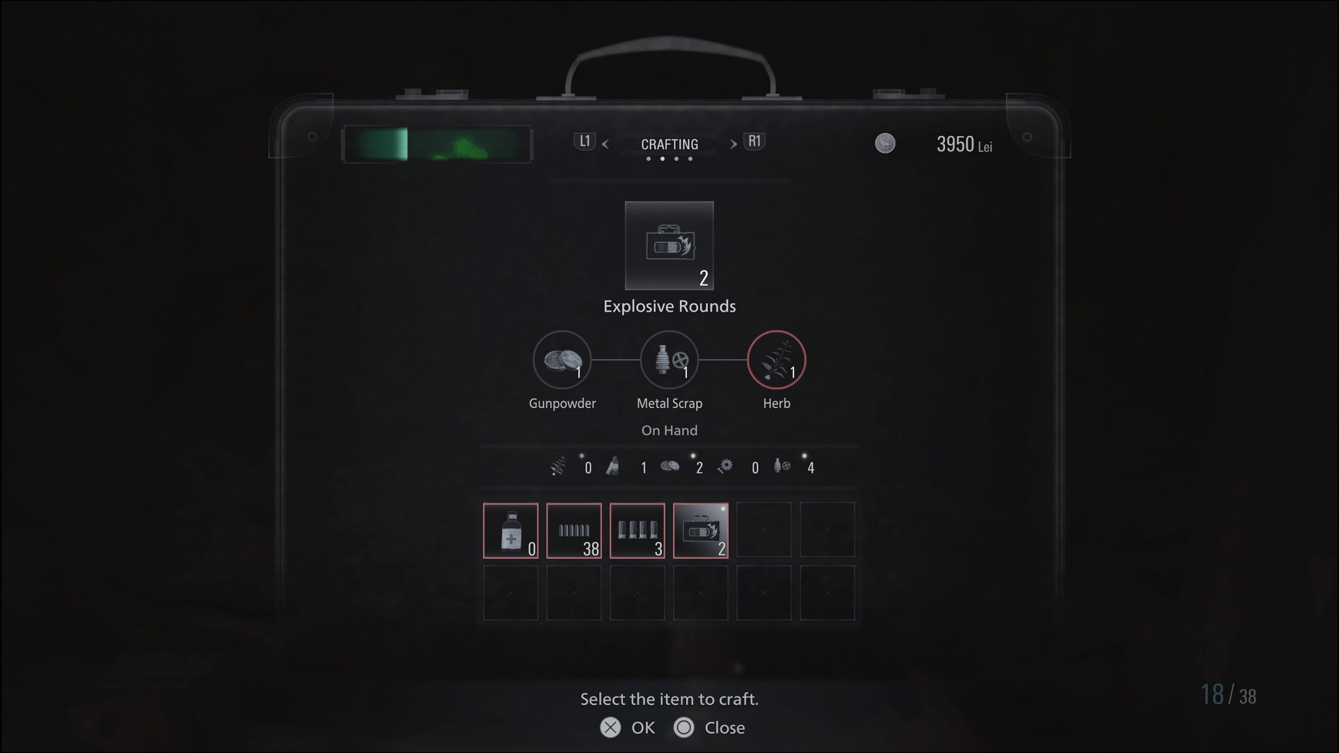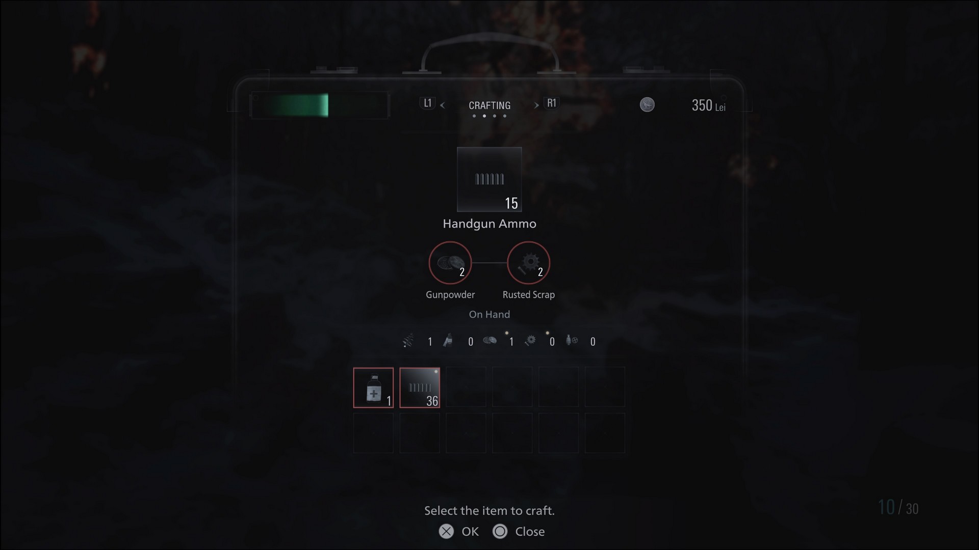 أكبر دليل على أن تلك اللعبة مستوحاة من Resident Evil 4 هي نظام الـ Inventory الذي يعود من هذا الجزء لكي يمكنك من تحريك وتنظيم مواردك داخل حقيبتك بحيث تتيح مساحة لموارد أخرى مستقبلاً وكما تعلمون يشهد هذا الجزء على عودة نظام الصياغة الذي يمكنك أن تصوغ من خلاله ذخيرة، قنينة لإستعادة حياتك أو يمكنك حتى صياغة أنواع طلقات مختلفة ويعتبر هذا النظام هو أكثرهم استخداماً من ناحيتي، أولاً لوازم الصياغة ليست صعبة المنال ، يمكنك الحصول على Herb أو Chem Fluid من أي منطقة، الخردة متناثرة في كل مكان لتتمكن من تصنيع الطلقات التي وجدت نفسي أحمل عدد لا بأس بها وبالتالي استغنيت عن فكرة شراءهم من عند الـ Duke لأوفر المال لشيء أفضل. (اسحب لرؤية الصور)