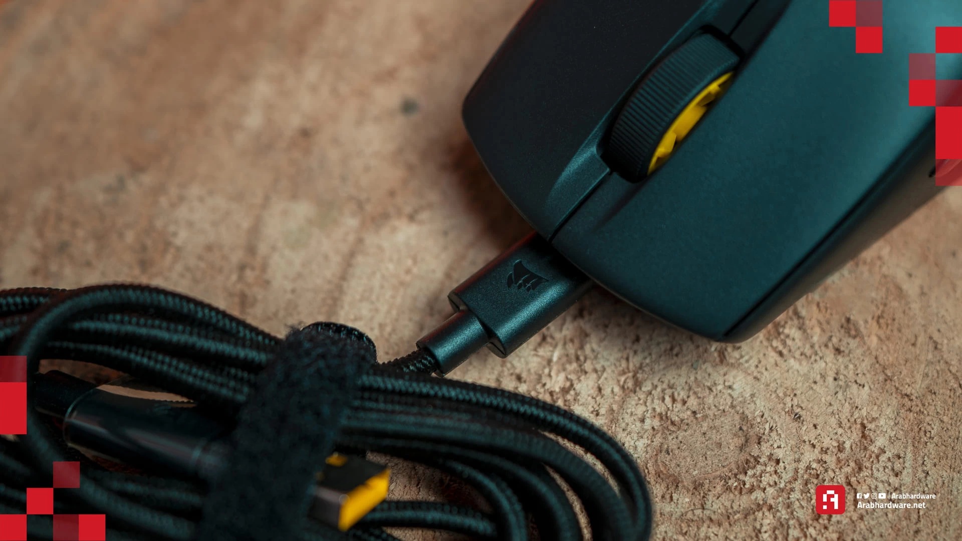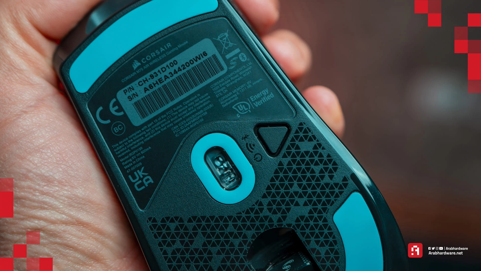 يزن الماوس حوالي 60 جرامًا، وهو بالضبط الوزن الذي ذكرته شركة Corsair على الموقع. أما كابل الشحن الذي يأتي مع الماوس M75 Air فهو كما أشرنا يأتي من النوع USB A-C، والذي على الرغم من أنه طويل للغاية (1.80 متر)، إلا أنه شديد الصلابة إلى حد كبير، مما يجعل عملية اللعب أثناء الشحن صعبة للغاية، خاصة لألعاب الرياضات الإلكترونية.
