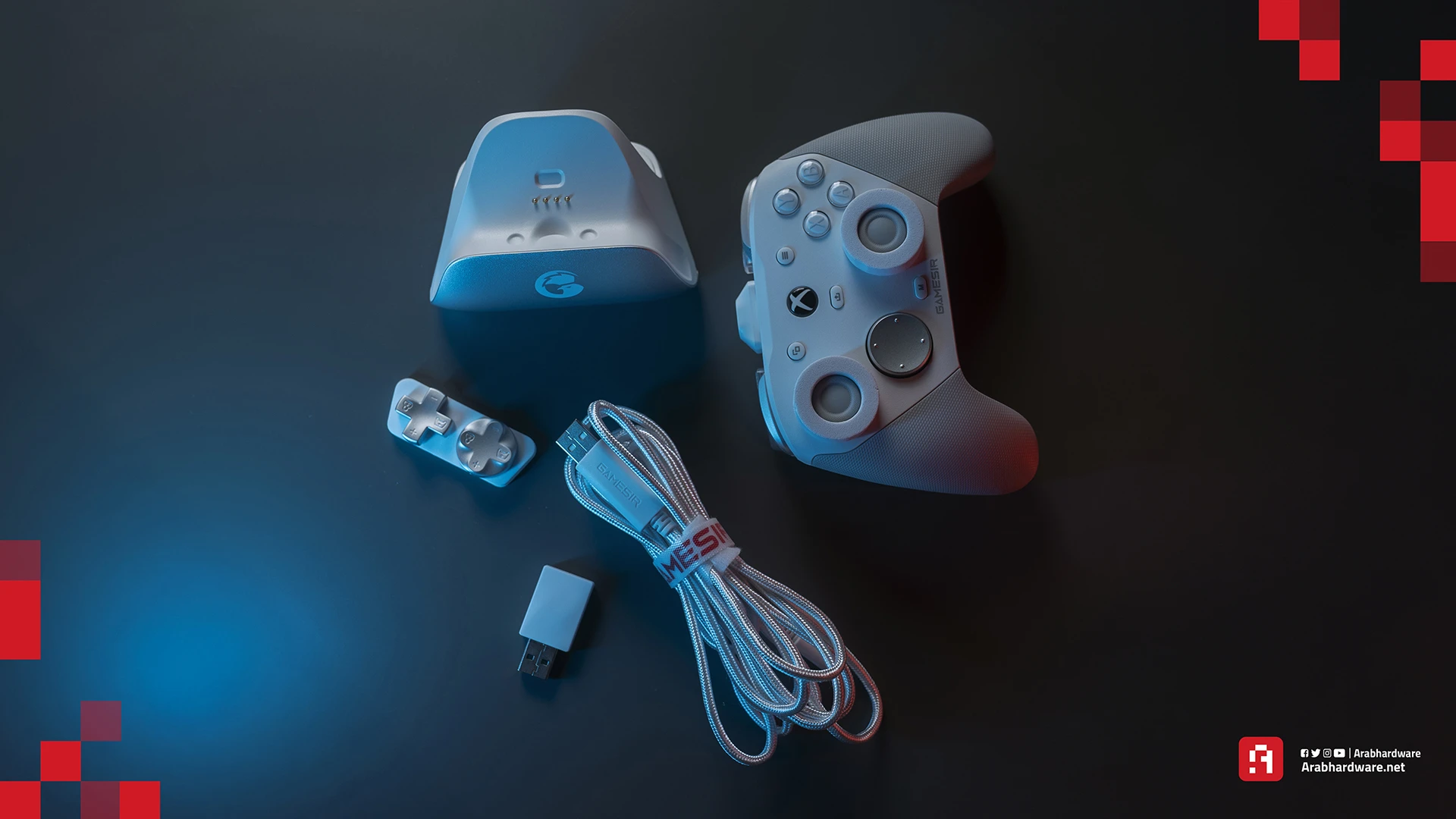 - الملحقات المتضمنة: قاعدة شحن، وجهاز استقبال، ووحدتا D-pad، ومثبت كابل، وكابل Type-C بطول 3 أمتار عدد واحد.