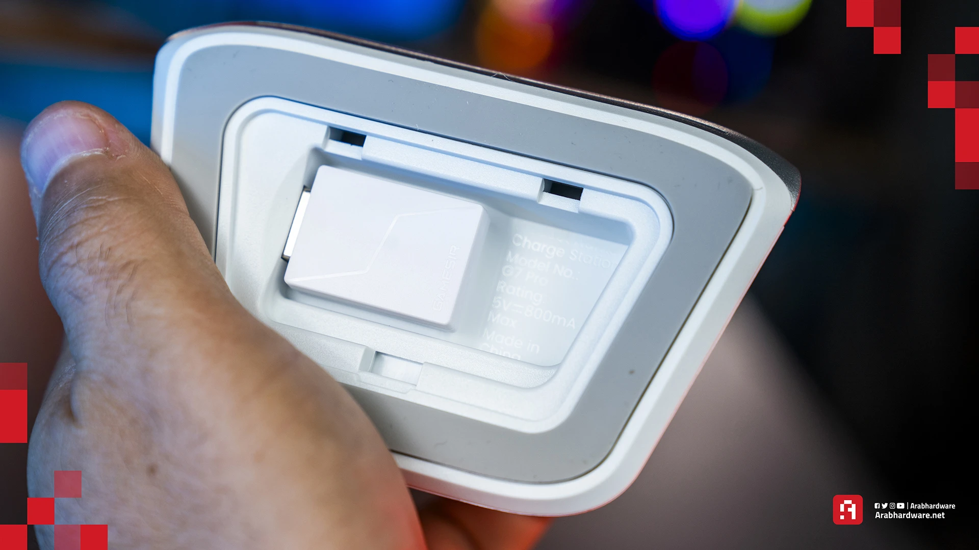 لاحظنا أيضًا أن كابل USB Type C القادم مع وحدة التحكّم تمّت تغطيته بغطاء بلاستيكي مُقوّى ليُساعد على حماية الكابل من الضرر أثناء تعرضه للاتفاف بطريقة مبالغ فيها، أو عند انحناءة من زاوية ما. وهناك لمسة جميلة أيضًا، وهي القدرة على فك الغطاء الأمامي لوحدة التحكم، إذ يمكنك تخصيص الشكل وفقًا لرغبتك الخاصة من ناحية الملحقات الموجودة مع سلسلة وحدات التحكم G7.