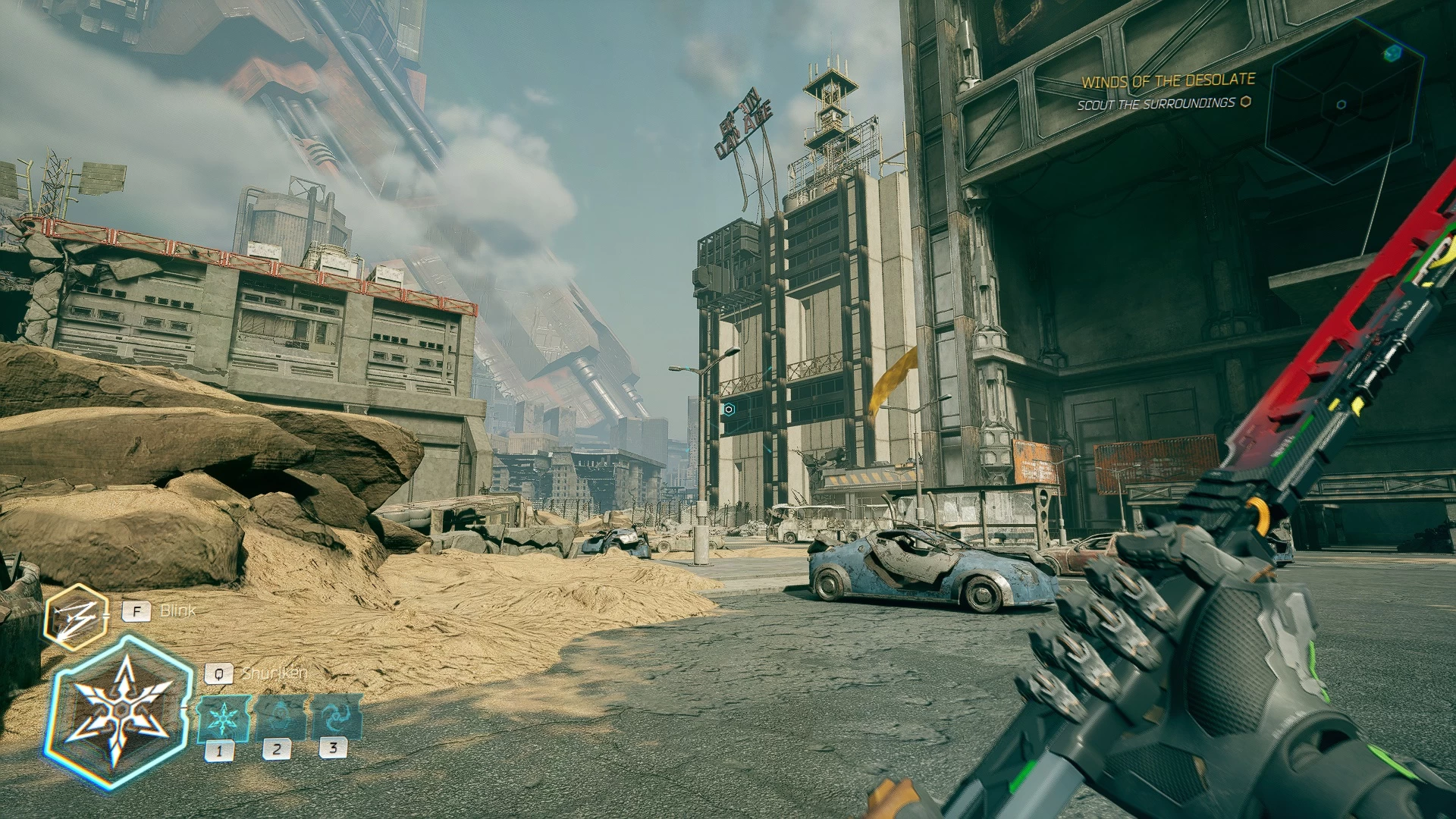 سيفك هو أساس نجاتك في Ghostrunner فمن خلاله تقتل الأعداء وتصد طلقات النيران، لكن اللعبة بها أيضًا مجموعة من المهارات الخارقة التي تُزيد من سرعة اللعب وتحكمك في وتيرة القتال. الجزء الثاني يضم تقريبًا كافة قدرات الجزء الأول مثل إمكانية دفع الأعداء بعيدًا أو استخدام سكاكين الشوريكين لقتلهم عن بُعد، ولكن توجد بعض الأفكار الجديدة المميزة هنا، وأعجبتني جدًا خاصية الاختفاء التي تجعلك أكثر فتكًا ولا يستطيع الأعداء توقع من أين ستهاجم!