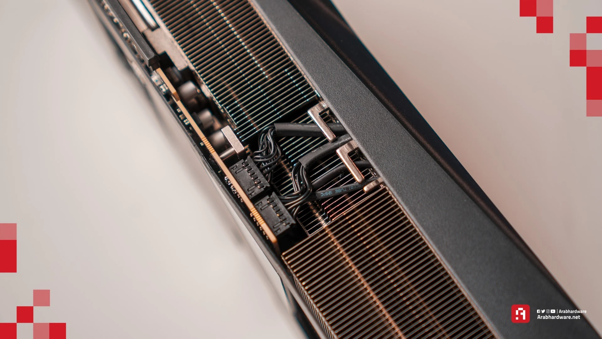 كما أشرنا للتو، يستخدم الكارت -في الجزء الخلفي- مروحة تبريد إضافية بحجم 120 ملم، وذلك لإضافة المزيد من طرد الهواء من الجزء الخلفي للكارت. بالطبع الفكرة العامة للموضوع مُثيرة، لكن في الحقيقة، أظن أن هذا هو العيب الواضح الوحيد في هذا التصميم الجديد للمراوح. حيث إن فكرة توصيل المروحة المُنفصلة خارجيًّا هكذا لا تبدو عملية للغاية، وتؤثّر على الشكل الجمالي للكارت وعملية تنظيم الكابلات.