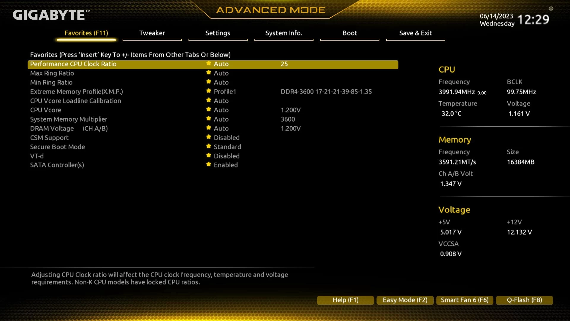 سنرى أيضاً أمامنا أن الذاكرة كانت تعمل بتردداتها الأصلية بدون أي مشكلة عند 3591Mhz، كما أن المعالج هو الآخر كان يعمل عند تردداته القياسية 3991Mhz بدون مشكلة، وهو ما تُظهره الصور أمامنا. وهذه الترددات بالطبع مع تفعيل تقنية XMP 3.0…
