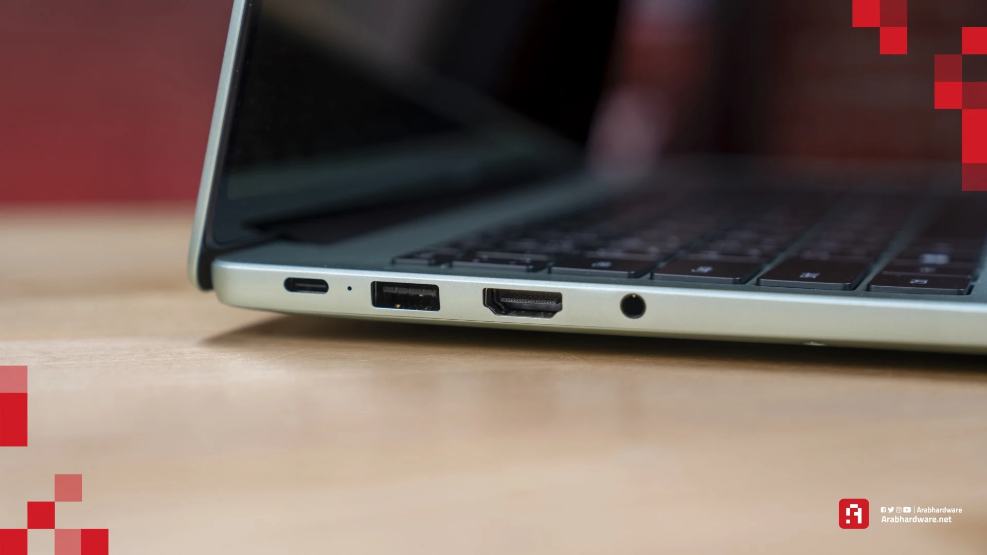 وماذا عن منفذ USB-C متعدد الاستخدامات؟ هذا المنفذ هو بمثابة الجوكر الذي يمكنك استخدامه لشحن اللاب توب، أو توصيله بشاشة خارجية، أو حتى نقل البيانات بسرعة فائقة. فقط، يعيبه عدم دعم تقنية Thunderbolt 4 كما في غالبية الأجهزة المُنافسة، والتي تُقدِّم بدورها فارقًا في سرعة نقل وقراءة الملفات من الذواكر الخارجية.