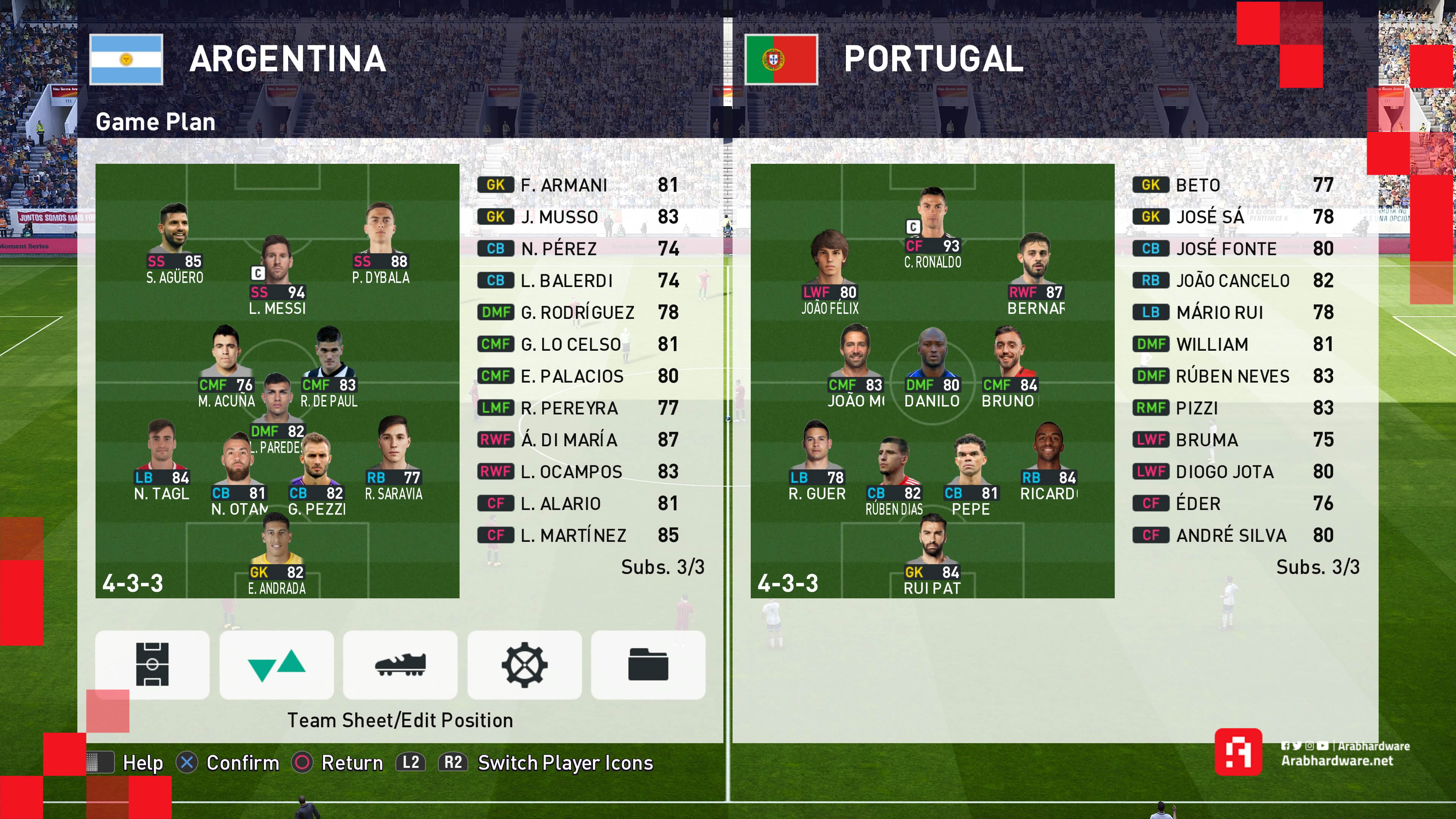 دعوني أتحدث عن واجهة المستخدم لأقول بأنها دوناً عن كونها نسخة طبق الأصل من الجزء الماضي إلا وأنها أكثر سوءاً هنا ، لا أعرف لماذا شعرت بأني ألعب لعبة Winning Eleven مثلاً أو أني مع واجهة مستخدم تشبه في ألوانها الألعاب القديمة ؟ ولكن فيما عدا ذلك ، نحن نتحدث عن نفس الواجهة الخاصة بالخطة ، التجهيزات قبل المباراة ، الـ Menu الرئيسي وحتى بقية الأطوار حتى تدخل أرض الملعب. (اسحب لرؤية كل الصور)