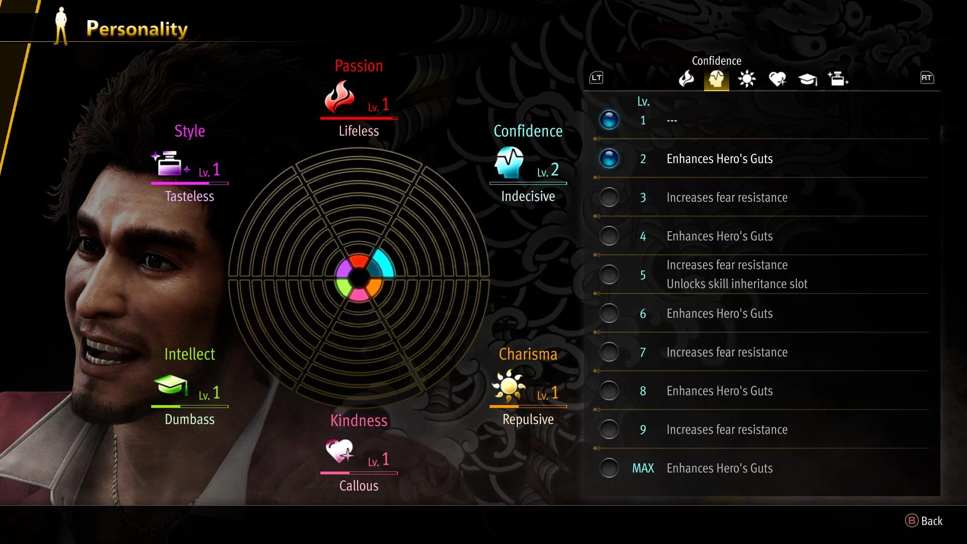 هذا البناء الرائع للشخصية أعطى قيمة للعبة، وجعلني أشعر أنني أتحكم بشخص حقيقي، كان من السهل على المطور بناء شخصية قوية أسطورية وكانت ستتماشى مع فكرة اللعبة والياكوزا، ولكن المطور قرر الاجتهاد وتقديم شخصية لها جوانب إنسانية حقيقية.