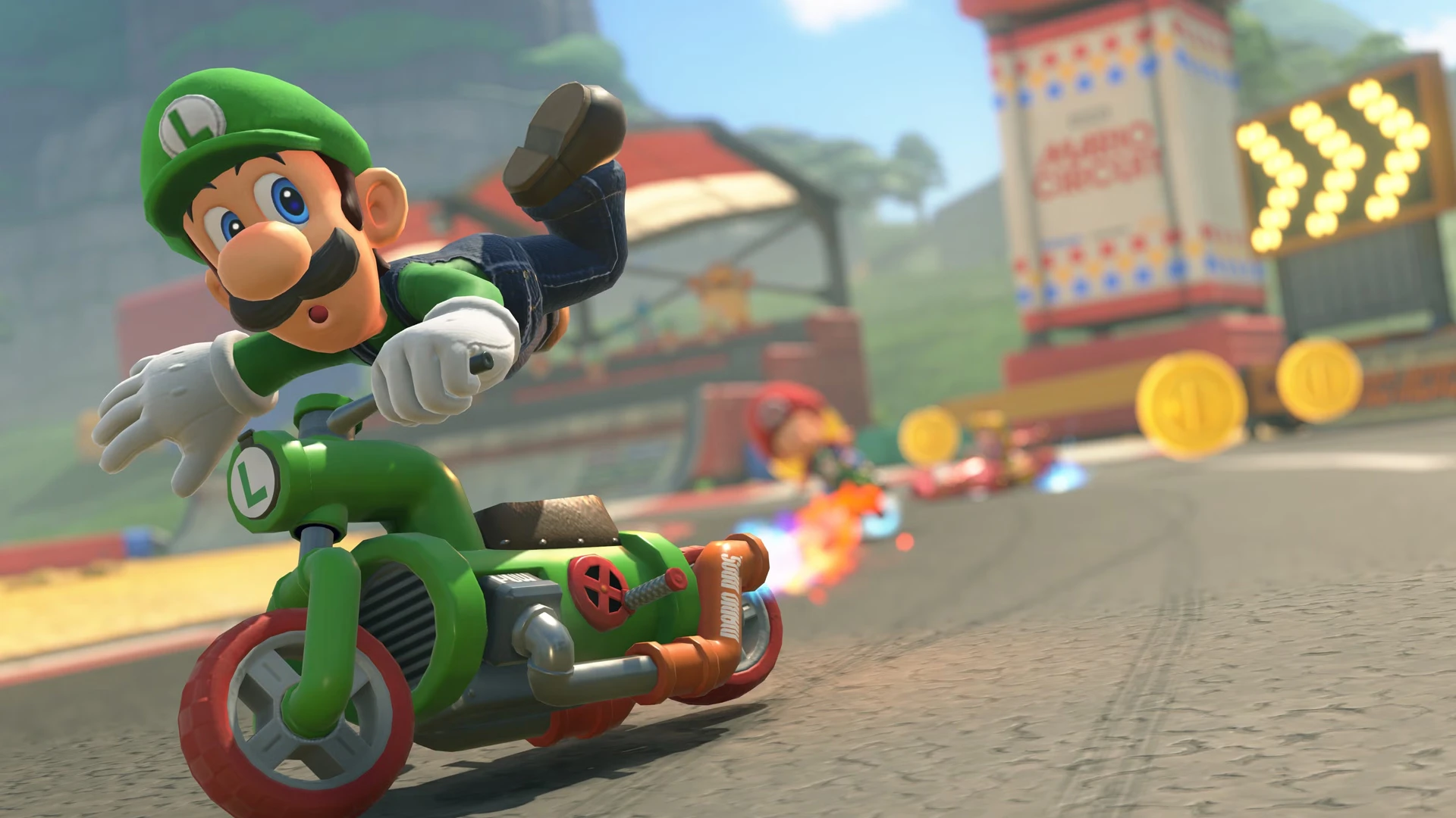 أما الحلبات، فهي النجم الحقيقي من حيث الرسوم. تتميز Mario Kart World بتنوع بيئاتها بشكل لافت، من المدن المزدحمة والمضامير الصناعية، إلى العوالم الطبيعية الخضراء والمناطق الخيالية المستوحاة من عالم ماريو الكلاسيكي. كل حلبة تحمل هوية بصرية خاصة بها، مع اهتمام واضح بالتفاصيل الصغيرة مثل الخلفيات المتحركة، والعناصر التفاعلية، والتغيرات البصرية أثناء السباق، مما يجعل كل مضمار تجربة مختلفة بصريًا.