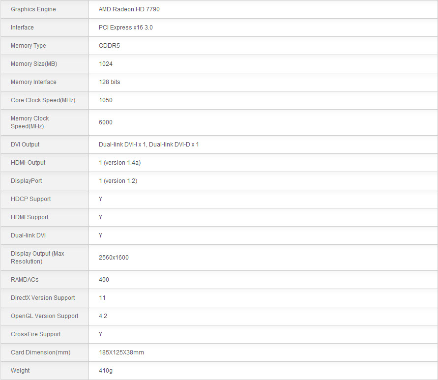 البطاقة مكسورة السرعة وتعمل بترددات أعلى من الترددات الأصلية، وبإلقاء نظرة سريعة على المواصفات التي تأتي بها بطاقة MSI HD7790 فيمكن القول نظريا ً أنها ستكون أقل البطاقات أدءا ً، فالترددات التي تعمل بها البطاقة تعد الأقل من بين البطاقات. فنجد أن ترددات النواة لكلا ً من بطاقتي Sapphire و Gigabyte تصل إلى 1075MHz فيما تأتي بطاقة MSI بتردد 1050MHz فقط للنواة، وبالنسبة لترددات الذاكرة فهي تأتي بالترددات الأصلية 1500MHz، حالها في ذلك حال بطاقة Gigabyte التي كانت أخر مراجعاتنا. وفيما عدا ذلك فإن باقي مواصفات البطاقة تاتي كأي بطاقة أخرى HD 7790 حاملة لنواة Bonaire الجديدة.