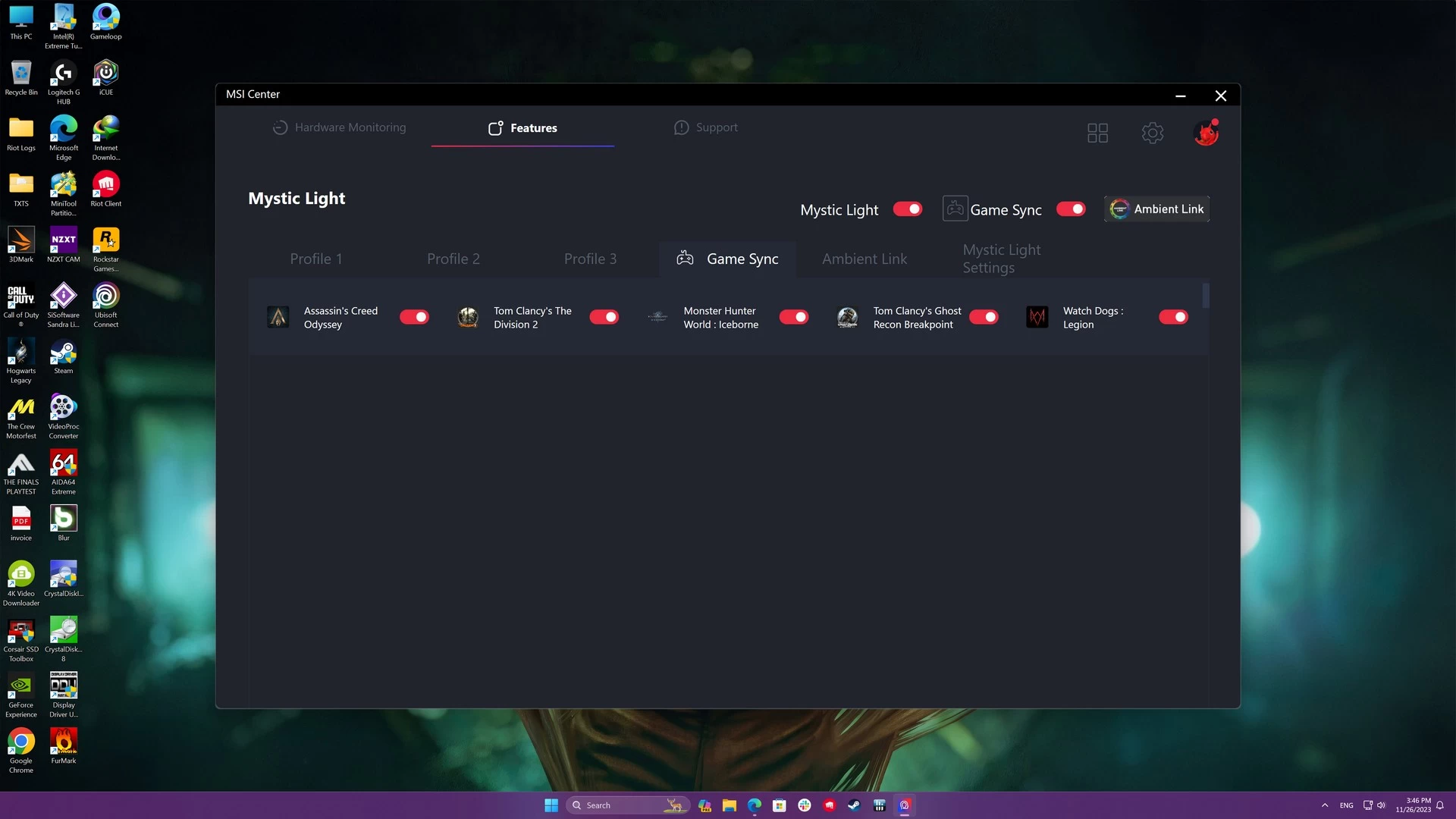 وضع الألعاب (Gaming Mode): تعمل ميزة وضع الألعاب على تحسين نظام الكمبيوتر، الشاشة، نظام التبريد والأجهزة الطرفية الأخرى لتوفير أفضل تجربة لعب ممكنة.