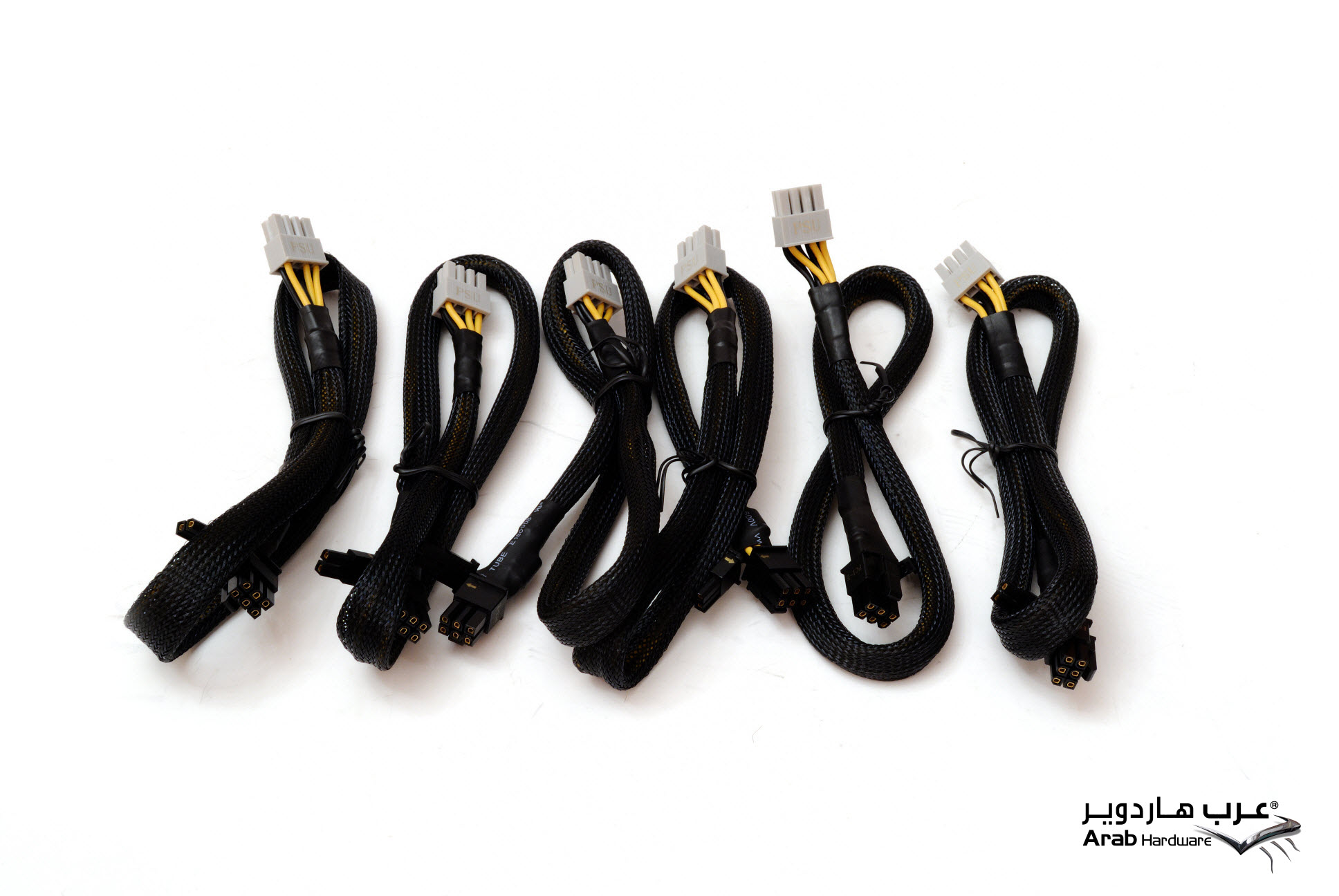 قامت الشركة بتزويد المزود بمجموعة من الكيبلات التي يمكن فكها و تركيبها حسب الحاجة, تغطي الكيبلات المرفقة حاجات مستخدمي الأنظمة متعددة البطاقات الرسومية و متعددة الأقراص الصلبة أيضاً. هيا نتعرف على الكيبلات المرفقة.