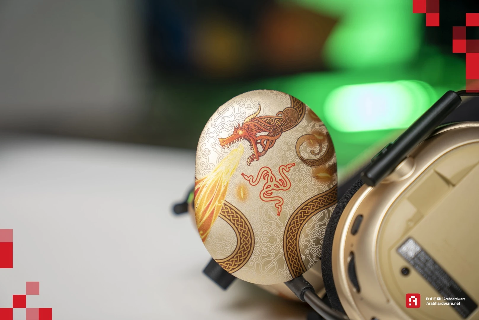 أما إصدار Counter-Strike 2 الجديد، فيأخذ كل مزايا السماعة ويكسوها بمظهر فريد وراقي ودقيق مثل: خياطة عصبة الرأس، وشعار CS الموجود على جانبيها، والدمج الساحر بين فن Aura of the Dragon Lore وشعار Razer.