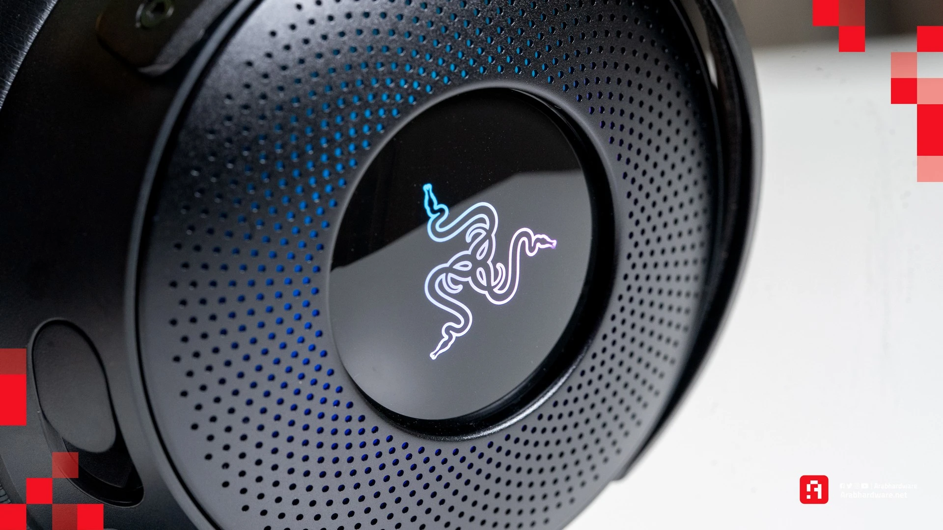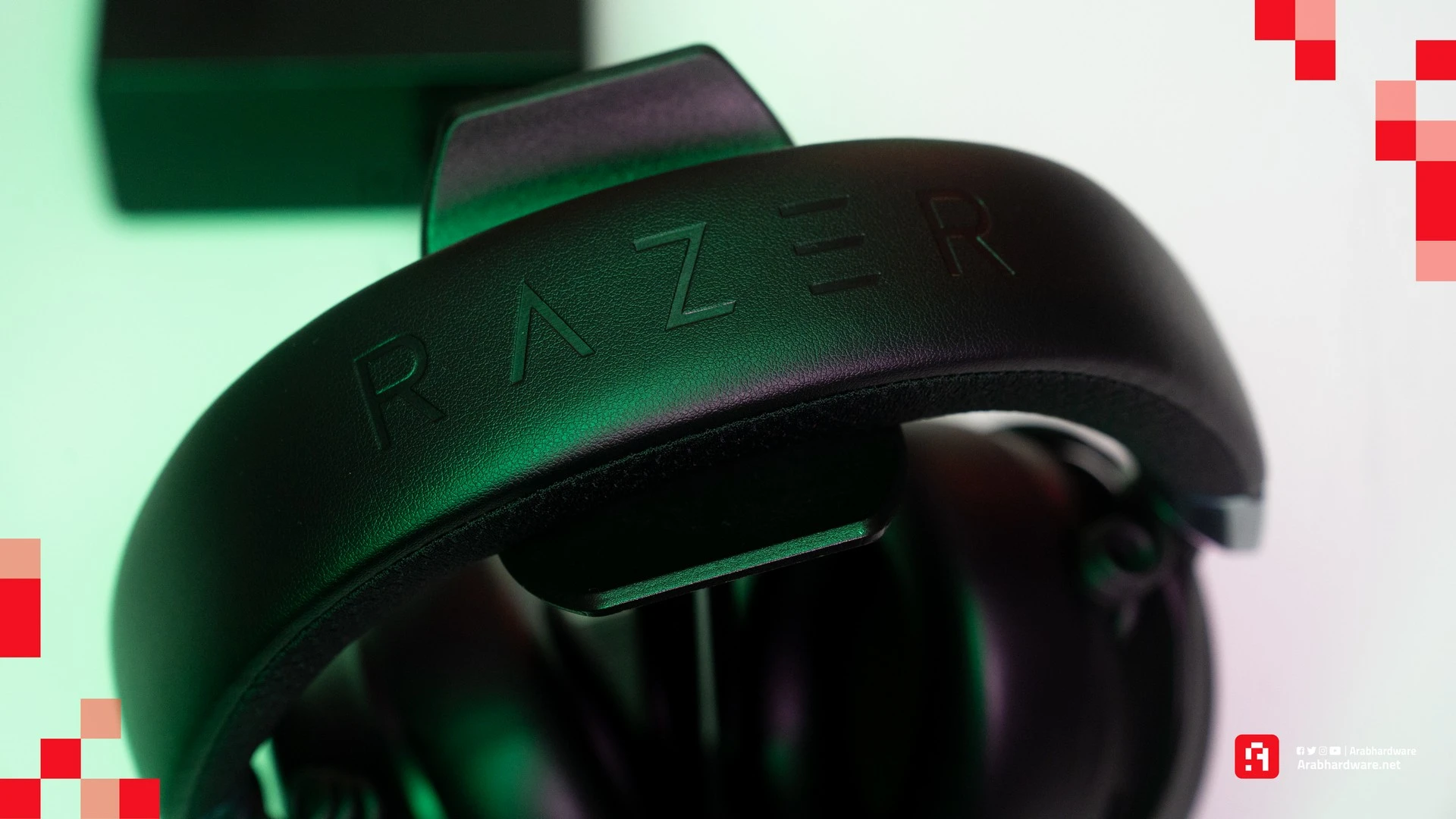 كما أشرنا في البداية، تأتي السماعة الجديدة مع عدد من التحسينات مقارنة بالنسخة الأصلية من الجيل السابق. فلدينا في البداية أكواب الأذن البيضاوية مع جزء خارجي دائري ينقسم لقسمين (دائرة كبيرة وأُخرى أصغر). الدائرة الأكبر تأتي مثقوبة بشكل جميل لتوفير بعض التهوية للسماعة، في حين أن الدائرة الأصغر تأتي ملساء وناعمة، تتوسطها شعار Razer مع إضاءة RGB.
