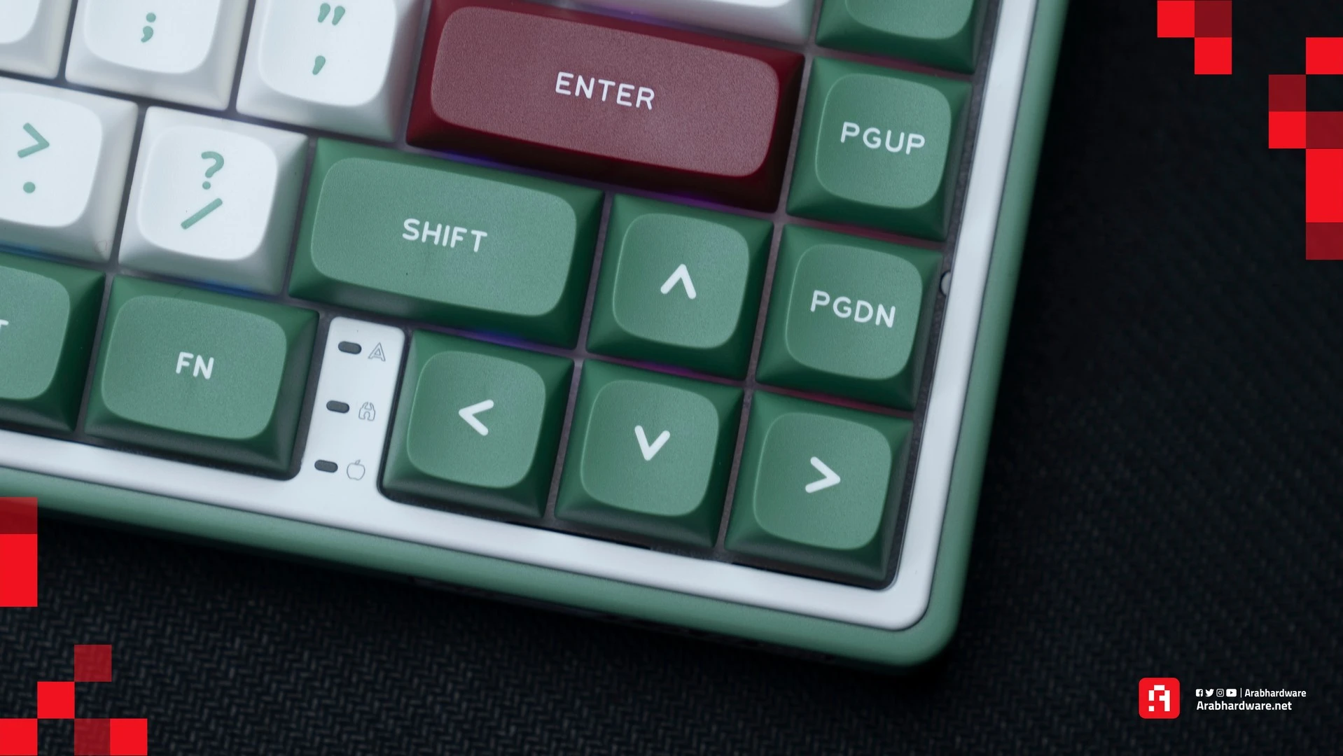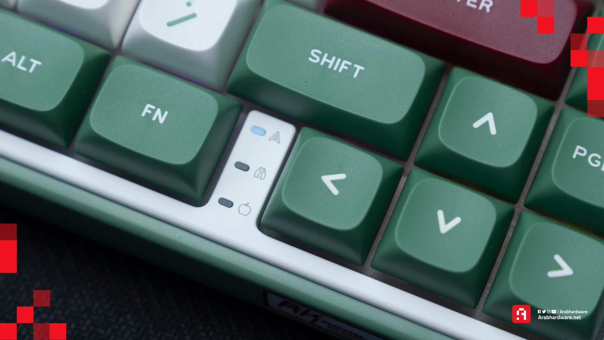 الأمر التالي الذي ستُلاحظه هو أن الكيبورد تأتي بألوان مُختلفة لكل مجموعة مفاتيح، وهذه الألوان تختلف حسب نُسخة الكيبورد التي معك. النسخة التي معنا كانت تتمتّع بمزيج من اللون الأخضر (مفاتيح الأوامر)، الأحمر الطوبي (مفاتيح Enter.Esc, Space) والأبيض (للأحرف والأرقام).