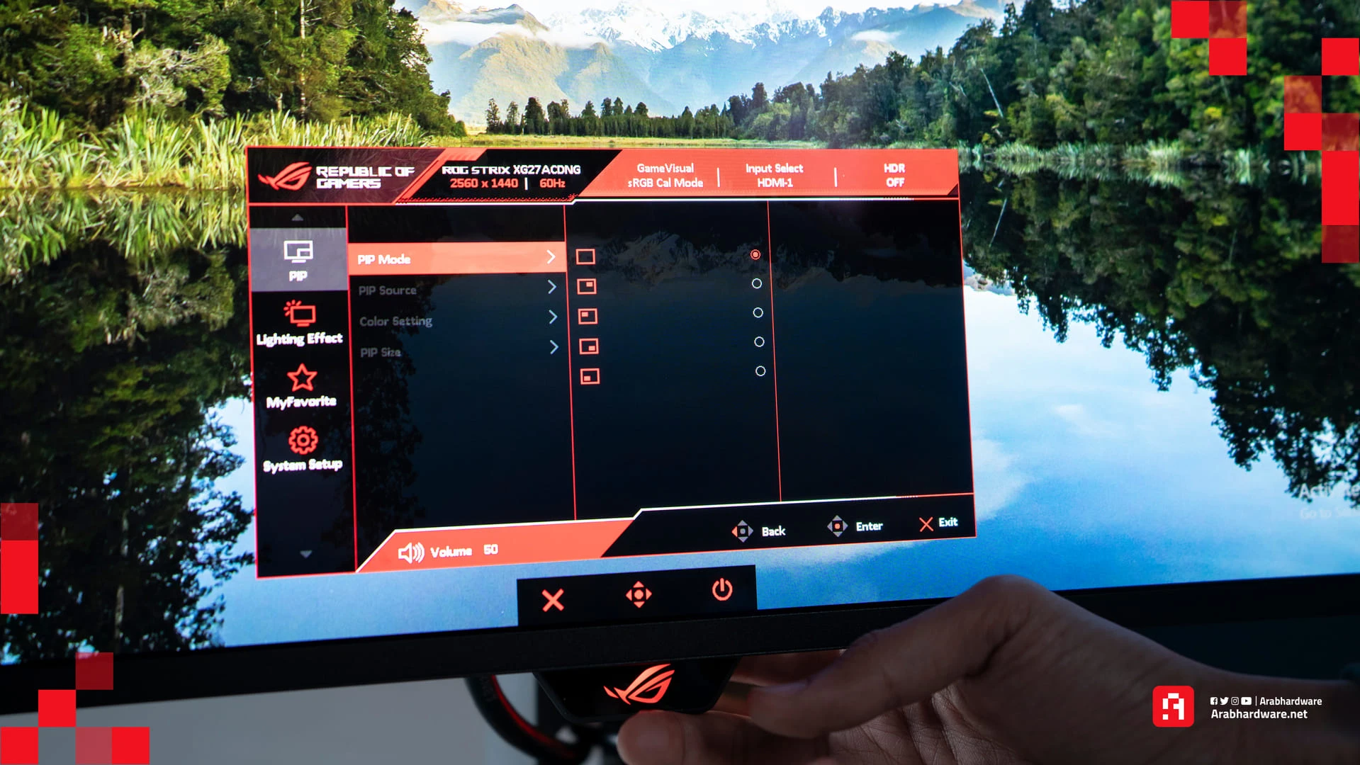 يتميز هذا النوع من شاشات الألعاب المتميزة بوجود عناصر تحكم من خلال عصا تحكم صغيرة، وهو ما يجعل التنقل عبر الإعدادات الموجودة على الشاشة OSD أمرًا سهلاً (في هذه الشاشة ستجد عصا التحكم موجودة في الخلف).