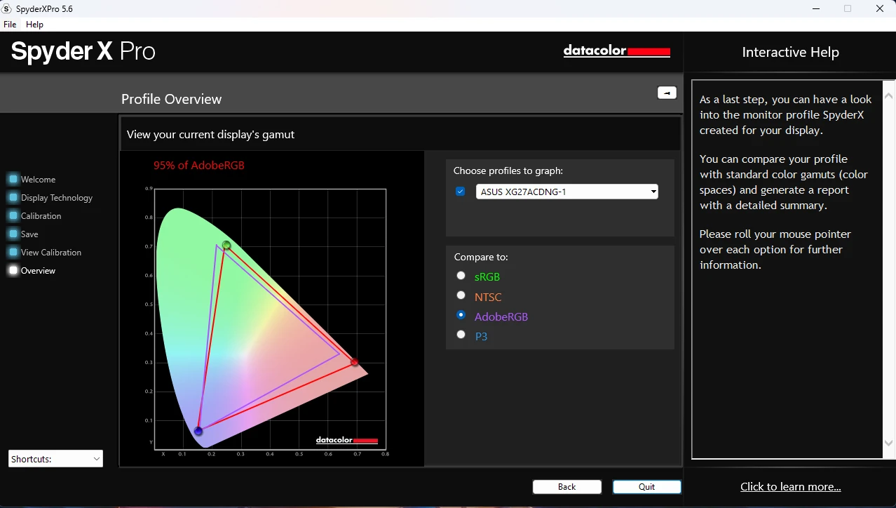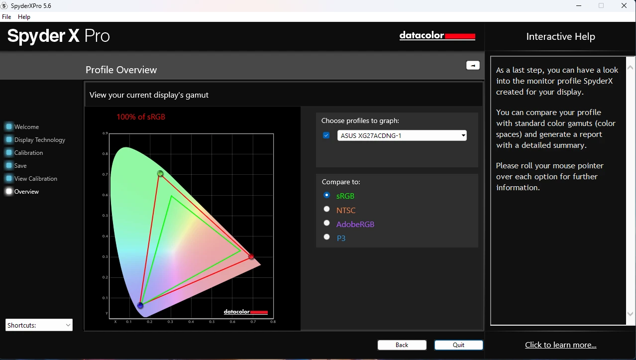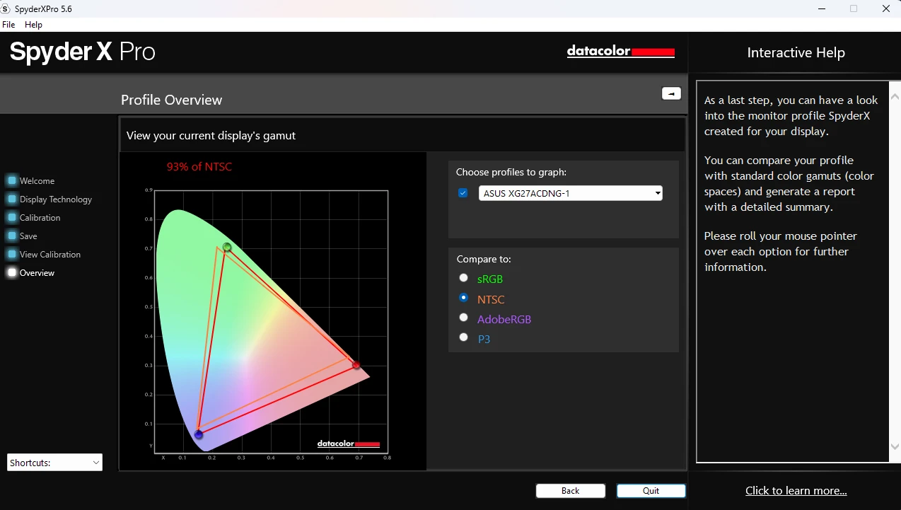 النتائج العامة للشاشة كانت رائعة بحق، فبالرغم من أنني لم أستطع عمل اختبار للشاشة ببرنامج SpyderX في وضع HDR، وذلك لأسباب فنيّة تقنية، حيث لا يُمكنك عمل معايرة اختبار للمجال الديناميكي الواسع، لأنه مُتغيّر؛ إلا أن المُعايرة على وضع SDR أسفرت عن نتائج مُمتازة للغاية.