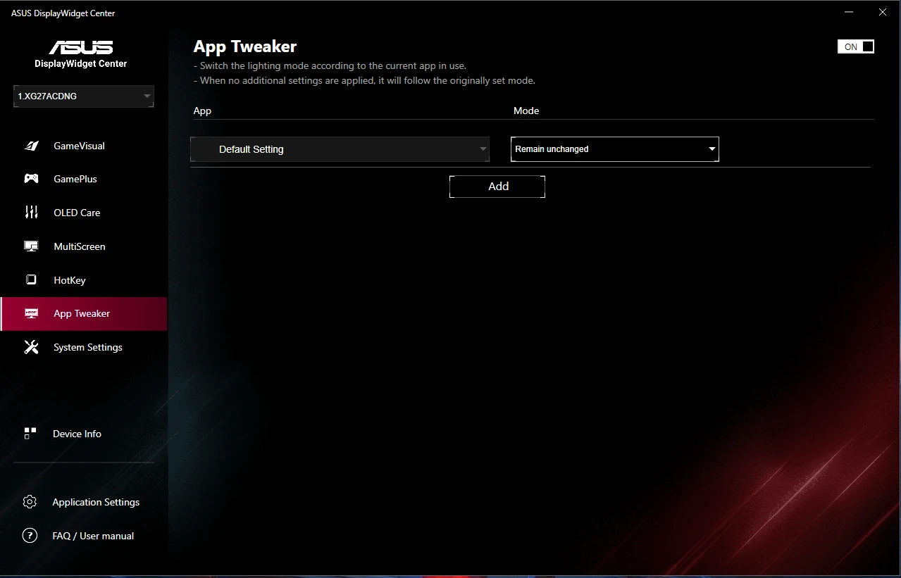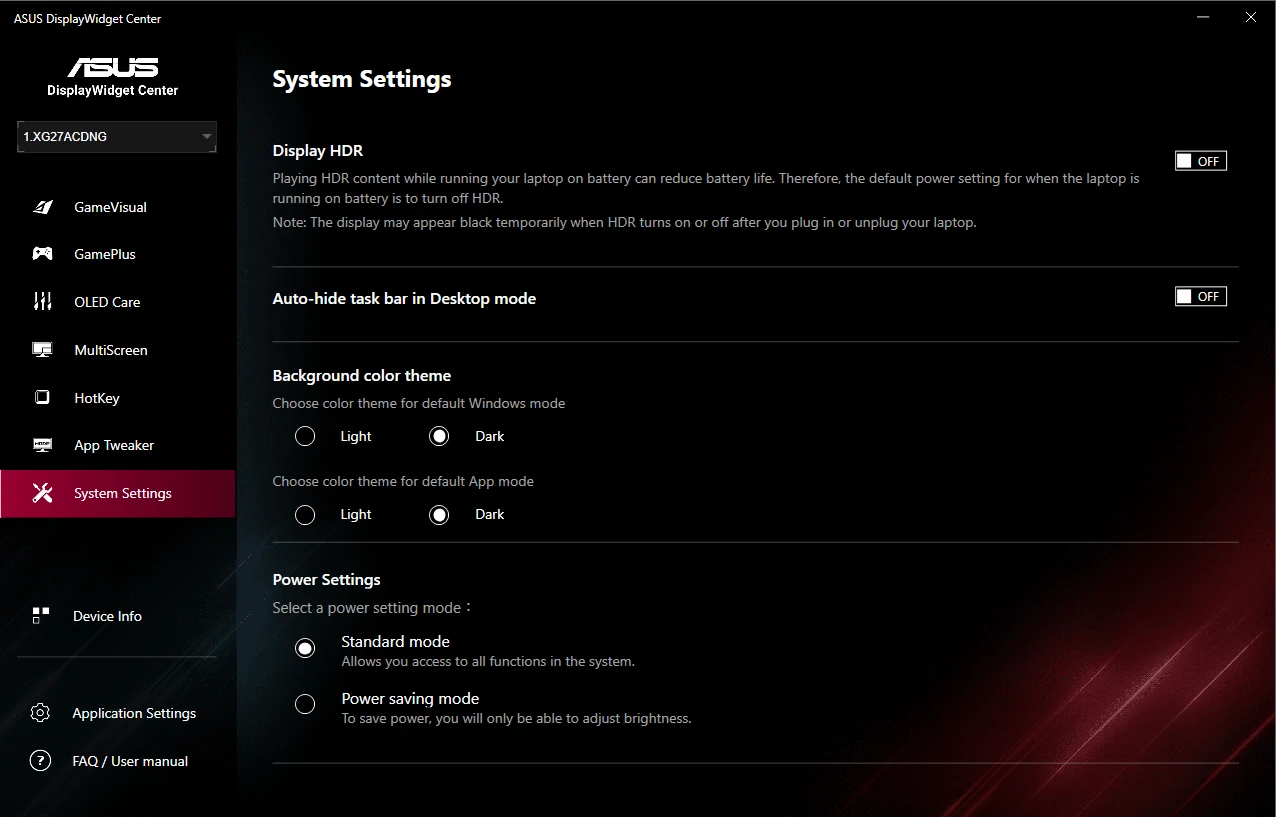 أمّا بالنسبة لقائمة App Tweaker فهي القائمة التي تُساعدك في تخصيص أوضاع أو خيارات بعينها مع التطبيقات على حدة، لتضمن بذلك أفضل وضع للألوان والصورة مع التطبيقات المُختلفة. تتلوها قائمة الإعدادات الرئيسية للشاشة، التي يُمكنك من خلالها تفعيل HDR أو أوضاع الطاقة وغير ذلك.