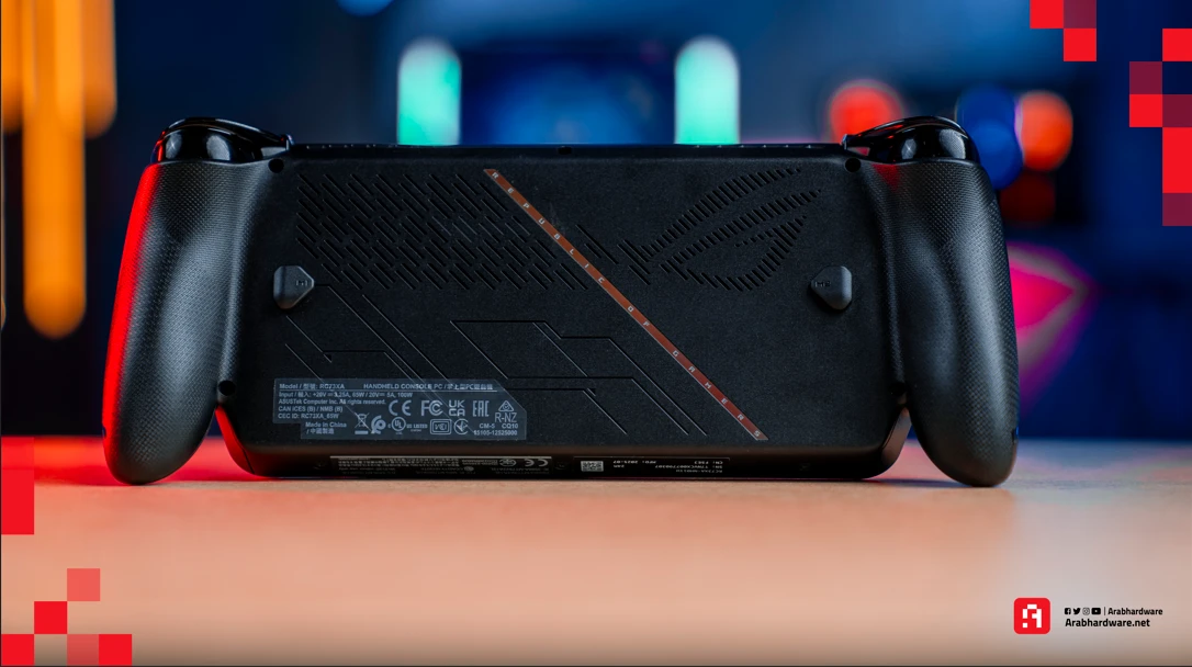الجهاز الآن أكثر صلابة في اليد، الأزرار أصبحت ذات إحساس أقرب ليد تحكم Xbox الأصلية، المقابض الخلفية أكبر قليلًا وأكثر راحة، والسطح الخلفي مزخرف بتفاصيل دقيقة تدمج بين أسلوب ROG العدواني ولمسات Xbox الانسيابية.